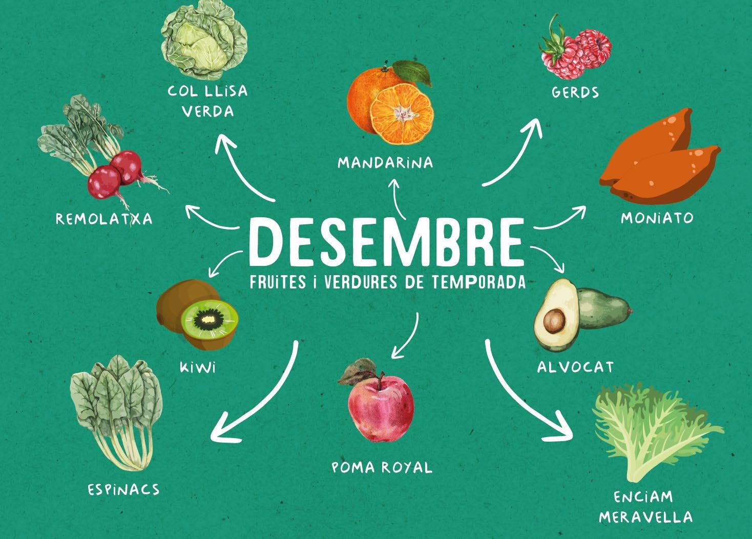 Quan arriba l’hivern la majoria de verdures i hortalisses de color verd estan en ple apogeu: col arrissada o kale, cols de Brussel·les, api, borratja, canonges, créixens, bledes, etc. Aquest mes destaquem la col llisa, l’enciam i els espinacs, el verd característic dels quals es deu a la clorofil·la, un pigment que activa les defensa, alhora que equilibra l’aparell intestinal. Així mateix, contenen una gran quantitat de vitamines A, B, C, E, K; minerals, com magnesi, potassi, ferro i zinc; fibra i àcid fòlic, que resulta fonamental durant l’embaràs per assegurar un correcte desenvolupament fetal. Quan les introdueixis als menús, recorda la importància de prendre-les tant crues com cuites, ja que la vitamina C és termolàbil i el percentatge disminueix quan es cou el vegetal.