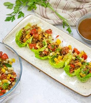 Las ensaladas de legumbres son ideales si te llevas la comida al trabajo o vas de excursión. Recuerda que el kimchi es un fermentado picante y se puede sustituir por chucrut o chucrut de lombarda, que son más suaves de sabor, pero igualmente probióticos.