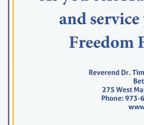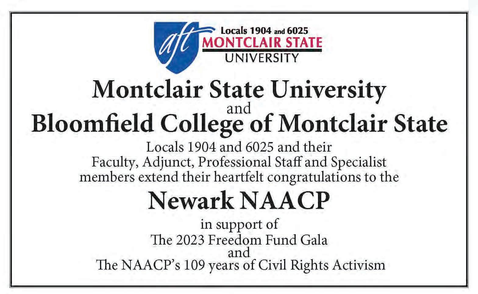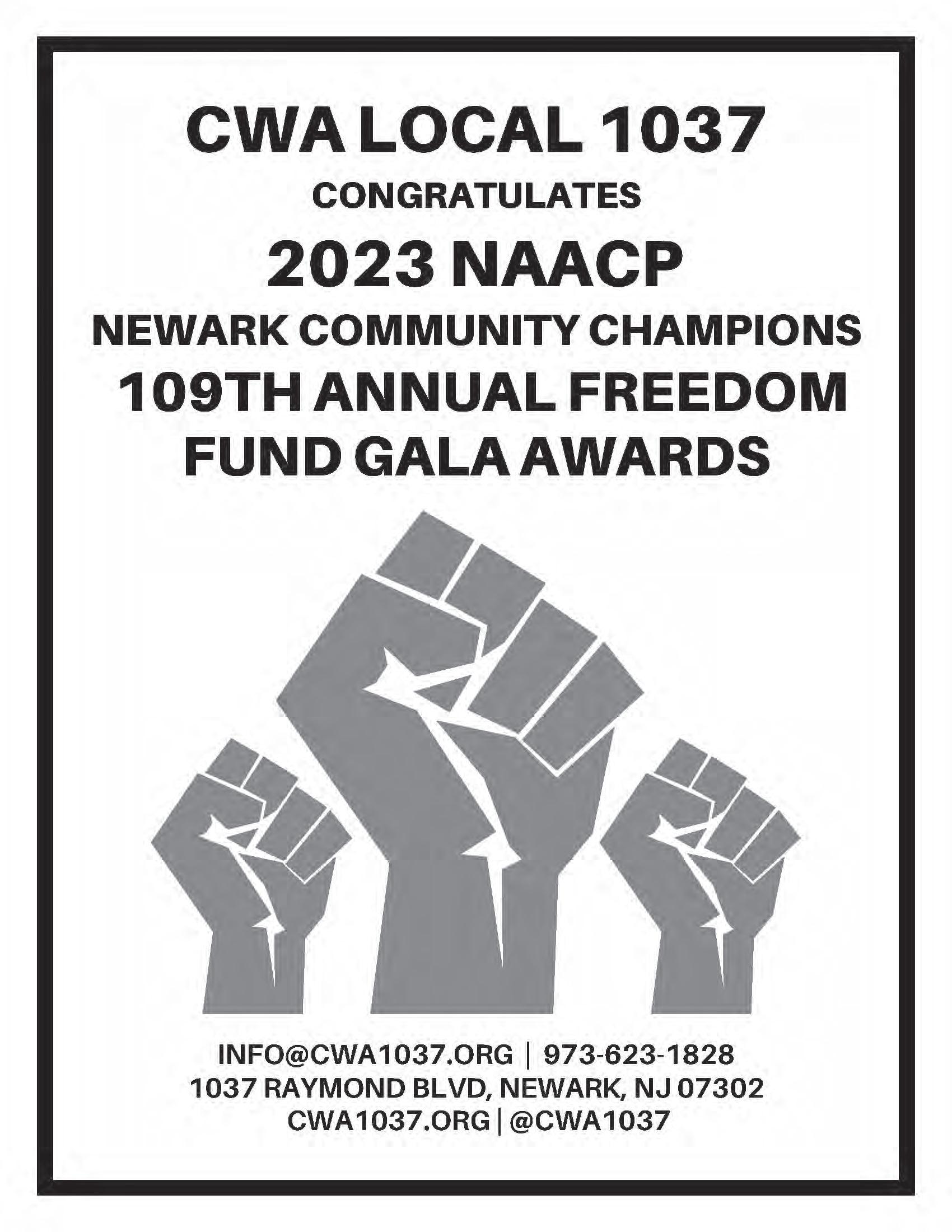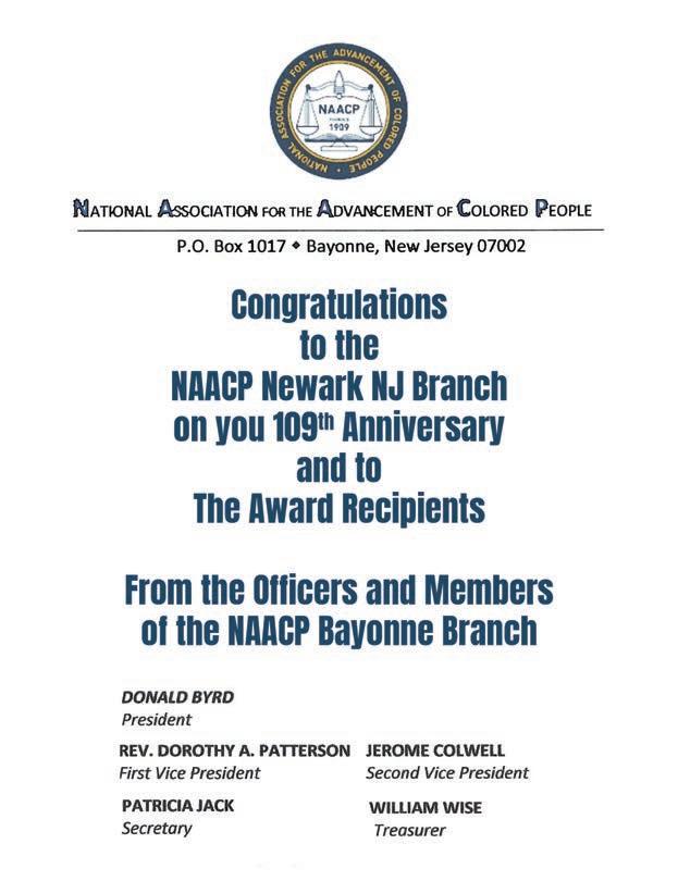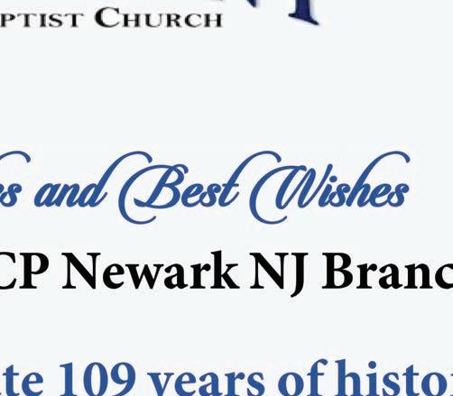 Congratulations to the NAACP Newark NJ Branch on your 109th Freedom Fund Gala Awards and to this year’s Community Champions. www.stmatthewame.org 336 Oakwood Avenue, Orange, NJ 07050 Rev. Melvin E. Wilson, Pastor/Teacher Rev. Leslie Wilson First Lady | Minister to Women Loving Submitted by Sister Kathleen Turpin Merritt, Steward