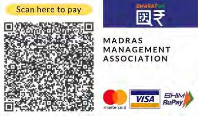 Credit Card/Debit Card / DD/Cheque drawn in favour of 'Madras Management Association'payableatChennai.