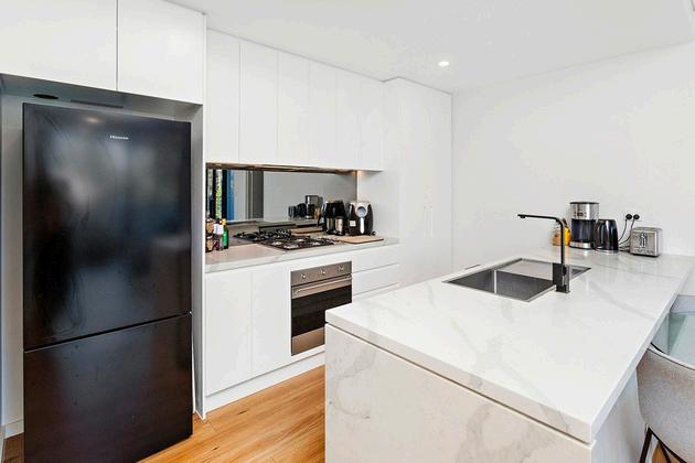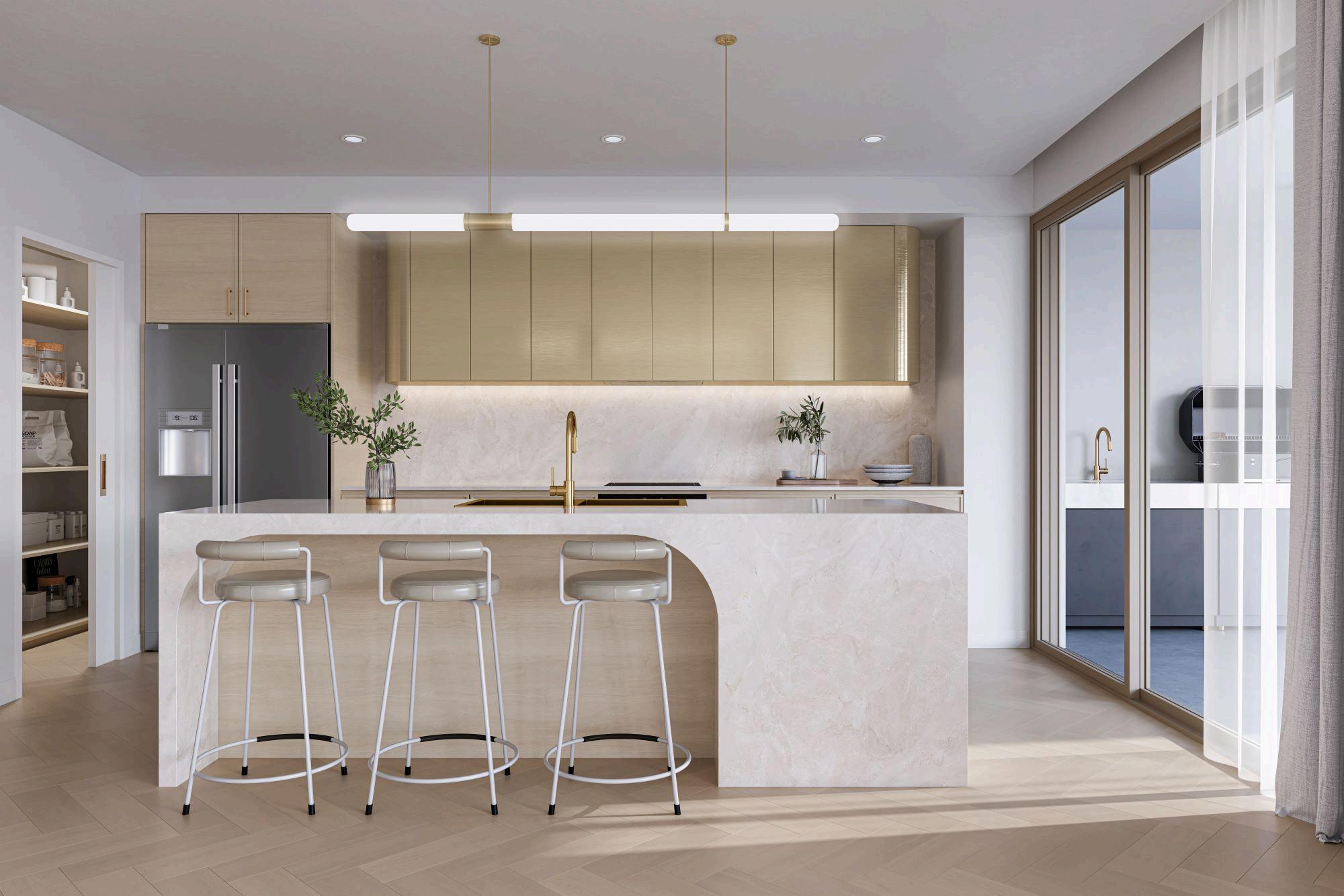 Sleek stone benchtops, Miele appliances, and a layout that inspires culinary creativity.