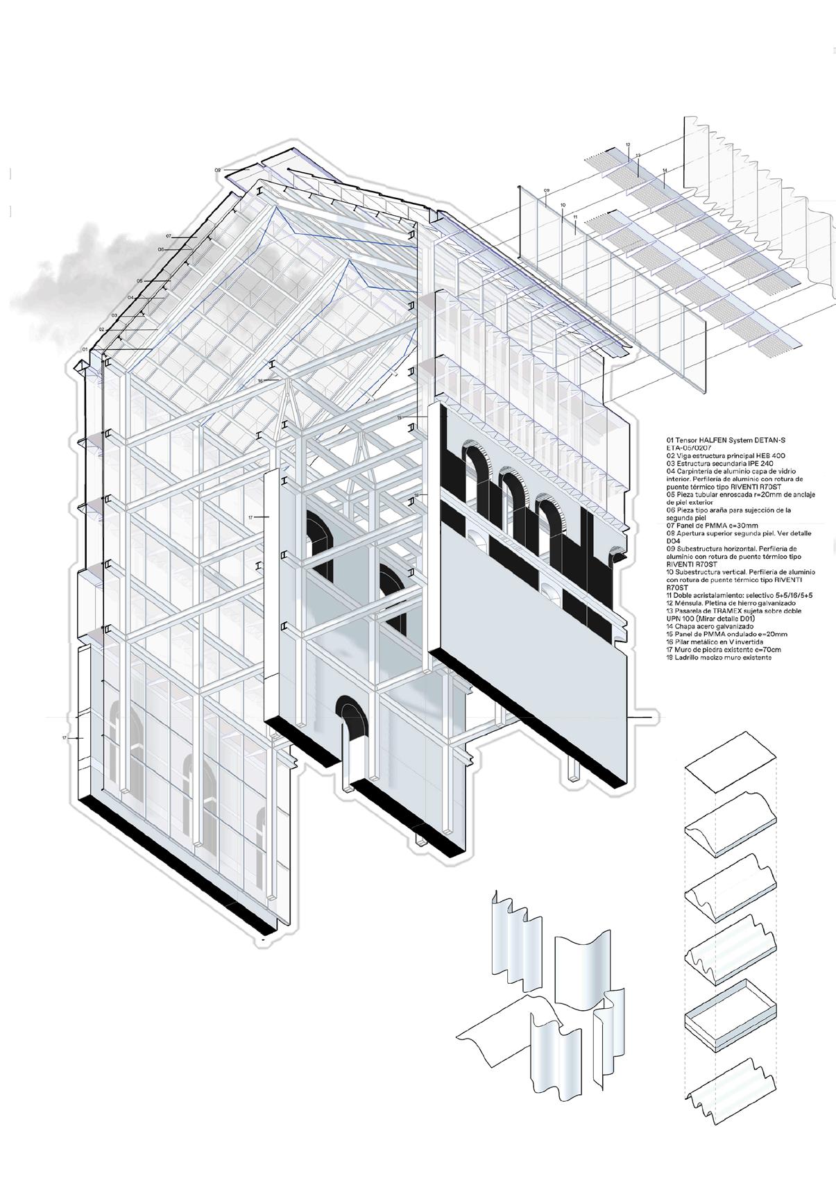 The architectural heritage of La Latina and Carabanchel, both districts of the periphery of Madrid, is in danger. Its buildings are neglected by the institutions, being vulnerable to degradation and disappearance, despite the neighborhood protests that demand the recognition and protection they need since they are not only important for the neighborhood, but also for the history of Madrid. The program for this building will be a daycare center for the elderly. The symbols of the most representative places of the neighborhoods are studied and reinterpreted, creating a frakestein of these forgotten architectures and preserving their memory.
