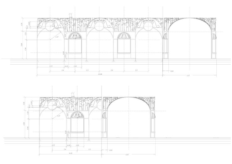Service spaces optimize available areas, fostering social interaction. Relevant building elements are repurposed to enhance the intervention’s cohesion, bridging urban and domestic realms. From the urban to the more domestic scale, the antique workshop becomes a roof.