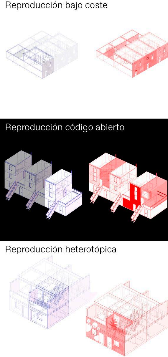 Por lo tanto, en este grupo la autoría se desdibuja, al igual que la forma de vivir de cada individuo. Considerando que todos los usuarios son iguales y sus hábitos y costumbres lo son también, entenderemos la reproducción como una forma de homogeneización y democratización. Es el habitante el que se adapta al diseño y no el diseño el que se adapta al habitante.