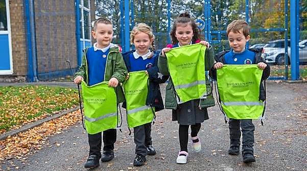 housebuilderhasgivenMoorhillPrimarySchool100ofthebagsfor itspupilstowearwhilstwalkingtoandfromschool,ensuring theycanbeeasilyseenonthe roadsasthedarkernightsdraw in KimEdwards,leaderof learningforreceptionandYear 1atMoorhill PrimarySchool, said:“We take ourchildren’s safetyseriously.Asthedarker nightsdrawin,werealisehow