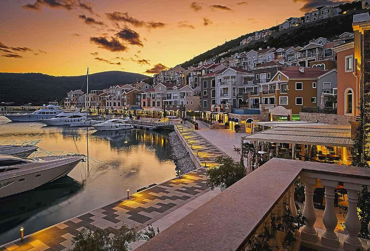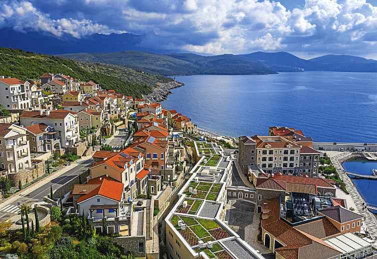 Built on aformer Yugoslav navalbase, its martial past has all but been erased, replaced by serenely winding roads and higgledy-piggledy houses, built like those seen in traditional Montenegrin fishing villages, with red roofs and foliage-draped walls.