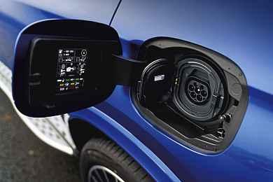 The electric charging port has been located in quite atraditional place, too, on the left-hand side where you’d expect to find the usual fuel filler cap. You’ll fill up with petrol on the opposite site