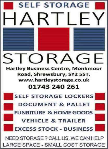 Menswear,Tailoring &Formal Hirewear Your One Stop Shop for One to One Professional Service AUTUMN & WINTER STOCK NOW IN 4–6 The Parade, St Mary’s Place, Shrewsbury, SY1 1DL 01743 236635 Opening times Tuesday-Friday 9.30am-5.00pm Saturday 9.00am-5.00pm Closed Sunday and Monday MOTORCYCLES ATV LAWN &GARDEN 01743440770 HarlescottLane, Shrewsbury,SY1 3AH. www.shrewsburyhonda.co.uk Dedicated craft room At home cafe Luxurious living rooms ROTHERWOOD HEALTHCARE.CO.UK T: 01952743 159 A: Roden, Telford,TF6 6BH Arrange avisit &meetour wonderful team: Need care for yourself or aloved one? We’dlovetotakethe time to get to know whatmatters to you. Offering Residential and Nursing Care in ruralShropshire.