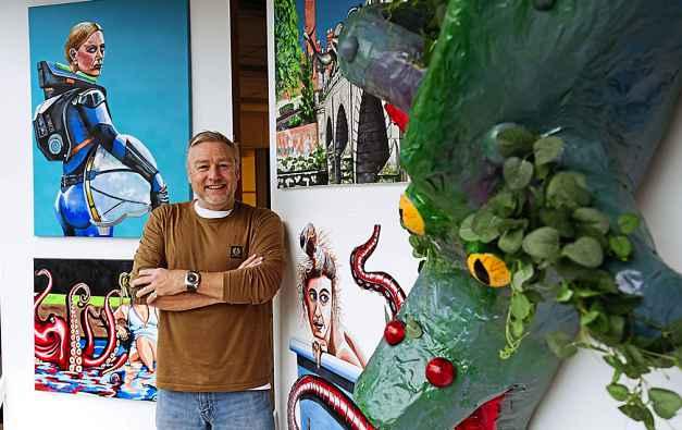 cusonprovidingaffordableworkspac estocreativesandsupportinglocalart projects.“TheartsceneinShrewsbury isfantastic,” Nigelexplained.“Raven Studiosandtheteamtherearegreat “I’vealwayspaintedandsoldbits anddonecommissionsbutsinceretir ingandmovinghereI’vereallybeen abletothrowmyselfintoartwithaban don.”AmongNigel’sfeaturedpaintings isalargepapermachesculpture,inspiredbyamonsterfromaSouthKore anfilm