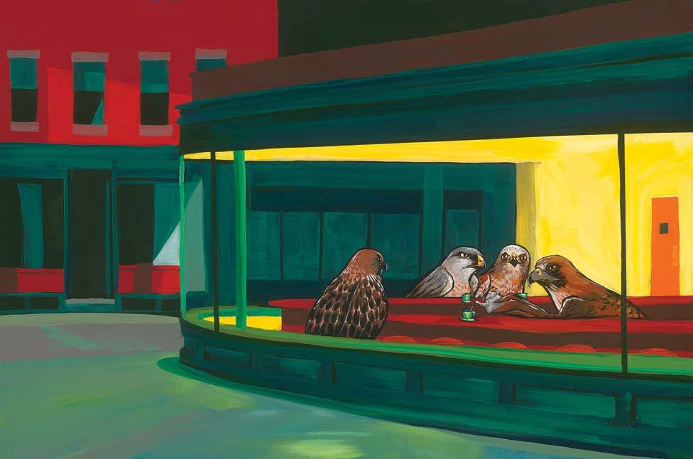 When I told a buddy of mine about my theme and title for this show (“Did You See That?”), he said: “You know what you should do? Do a play on Edward Hopper’s “Nighthawks,” but with actual hawks”