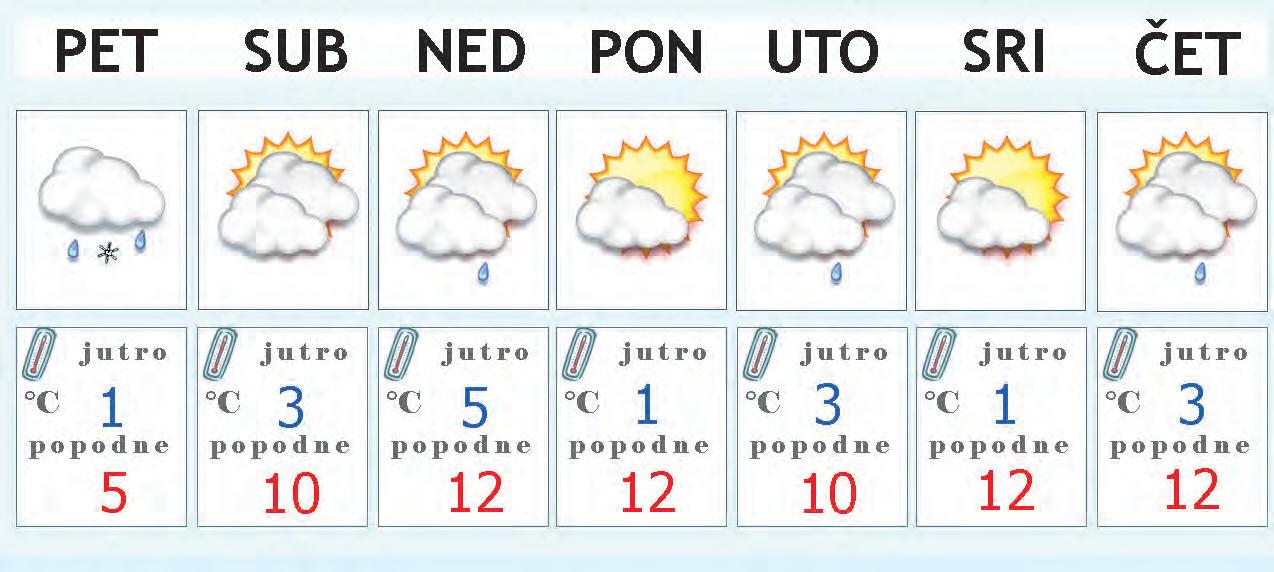 Podsjećamo da u noći sa subote na nedjelju prelazimo na ljetno računanje vremena. Čini se da novi tjedan počinje hladnim jutrom uz mogućnost slabog mraza, dok bi danju