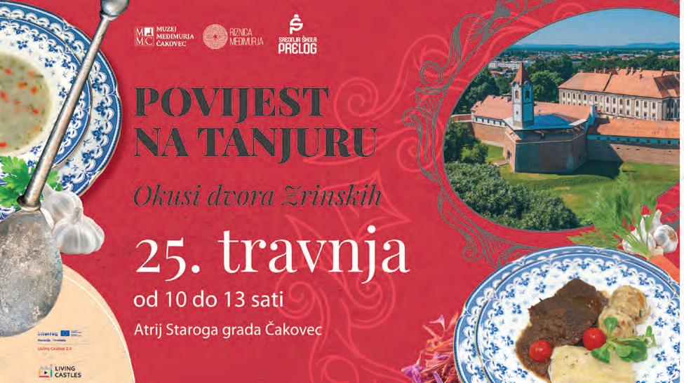 ti zalogaje s dvora Zrinskih i osjetiti okuse prošlih stoljeća. Uz degustacije, atrij će ispuniti mirisi kuhanja na otvorenoj vatri, stolovi s povijesnim začinima i napitcima te prikazi načina pripreme hrane kakva se nekada posluživala na plemićkom stolu. Posjetitelji će moći ponijeti i letak s receptom tradicionalnog jela Ollapotrida koje će se pripremati na otvorenoj vatri i dijeliti posjetiteljima, čak 250 porcija.