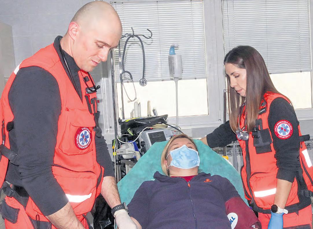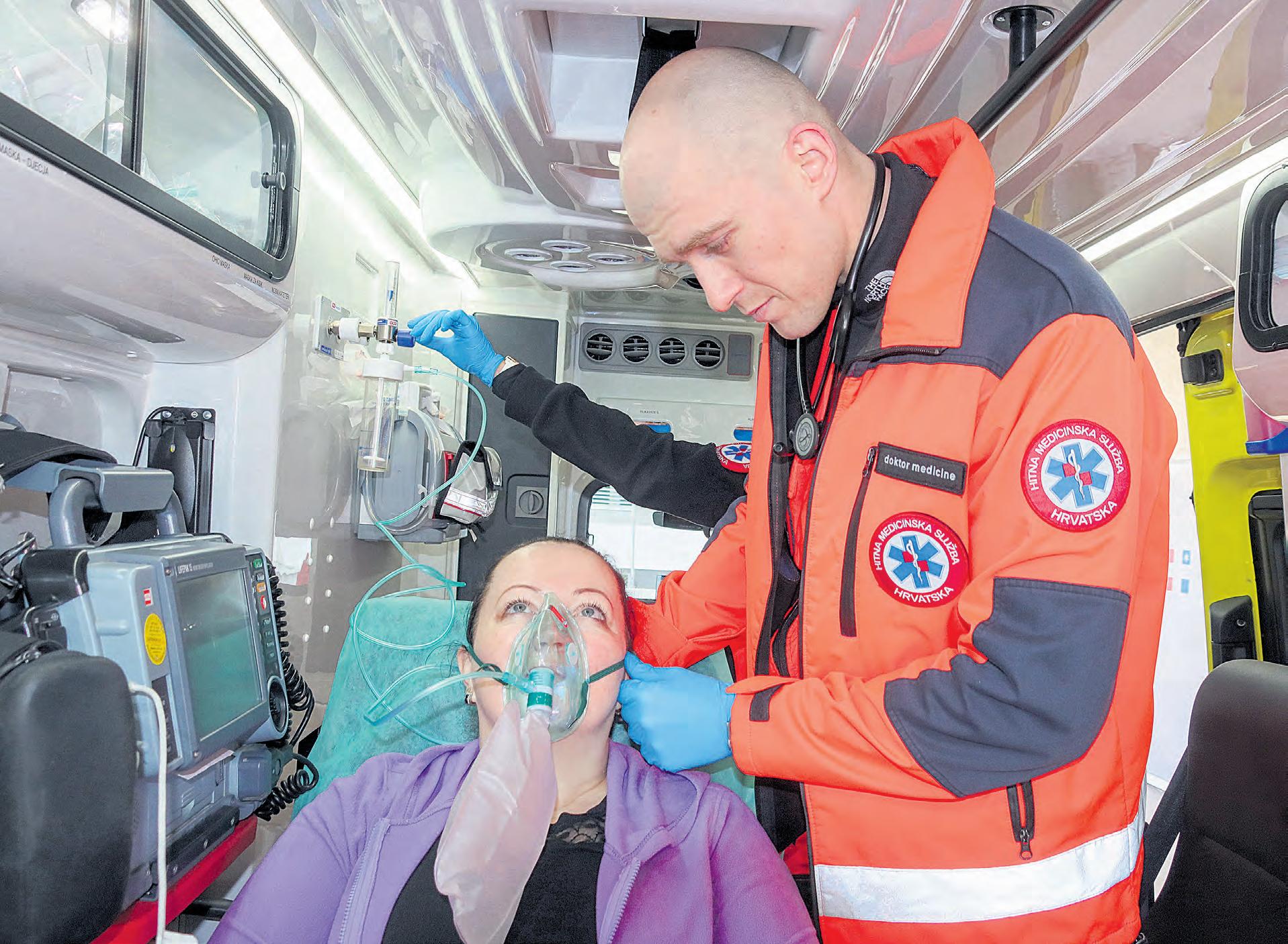 Primjena maske za oksigenoterapiju pacijentu tijekom hitne medicinske intervencije