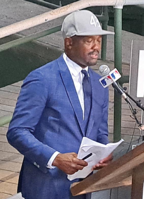 Former major leaguer Harold Reynolds, now an MLB network analyst, served as emcee. He read aloud a text he received from Willie Mays,