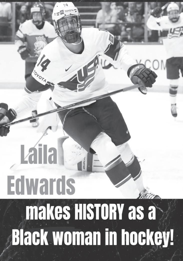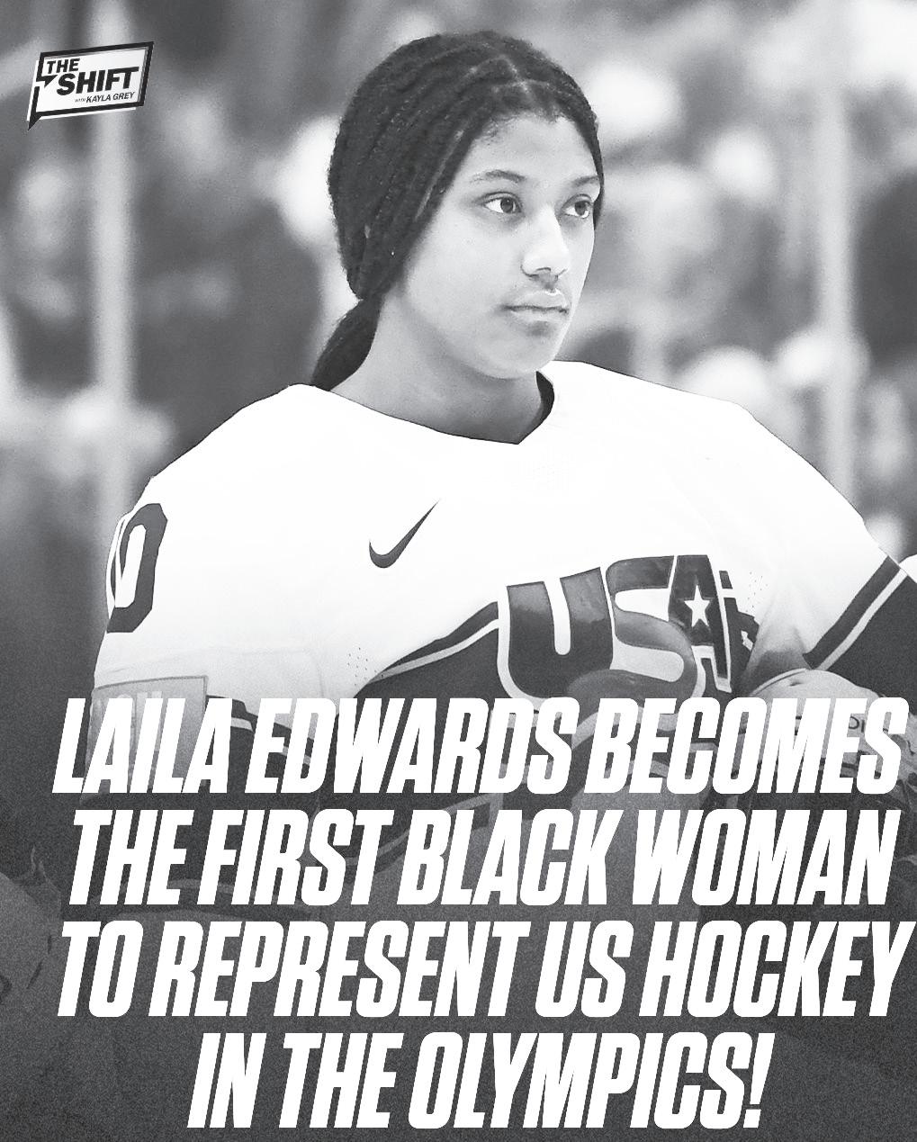 An Olympic first Laila Edwards will be the first U.S. Black player on the U.S. Olympic hockey team when the Winter Olympics begin next month. Sarah Nurse and Sophia Jaques, two of three Blacks in the PWHL, are playing for Hockey Canada.