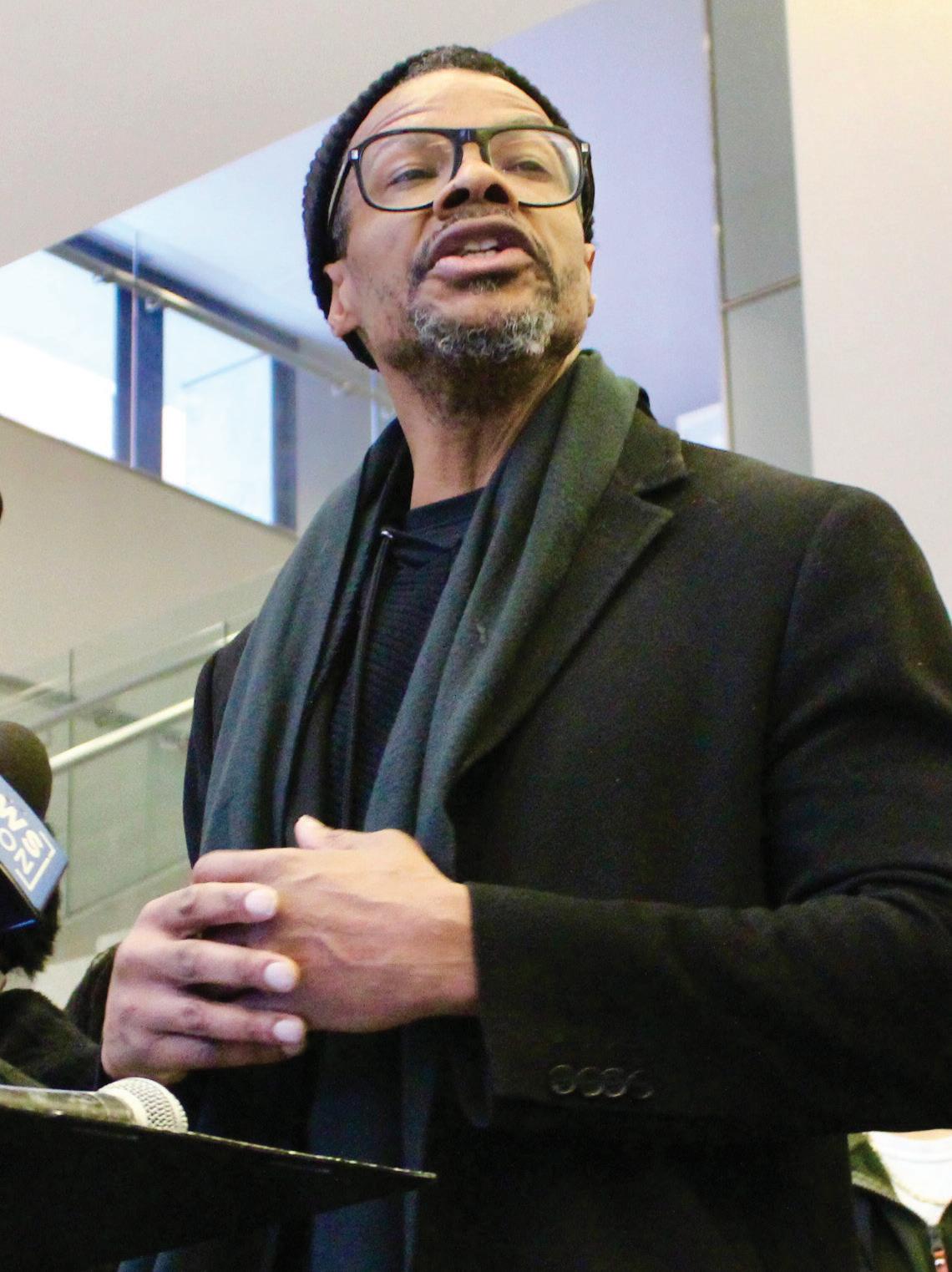 Marquise Armstrong, husband of civil rights attorney Nekima Levy Armstrong, speaks outside the federal courthouse in St. Paul following her arrest, Jan. 22. Izzy Canizares/MSR