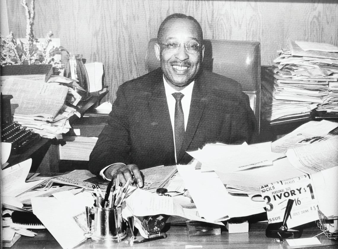 Founder Cecil E. Newman at his desk during the early years of the Minnesota Spokesman-Recorder. The desk is still used today by his granddaughter, CEO and Publisher Tracey Williams-Dillard, continuing the newspaper’s multigenerational legacy. Courtesy