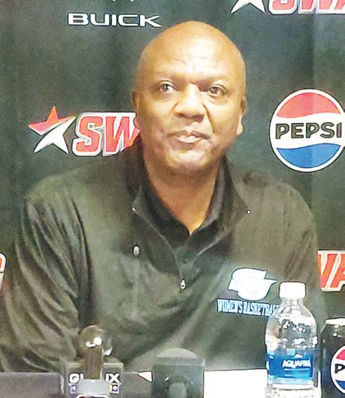 (l-r) SWAC Commissioner Dr. Charles McClelland, Southern Women’s Basketball Coach Carlos Funchess, and Prairie View A&M Men’s Coach Byron Smith. Charles Hallman/MSR
