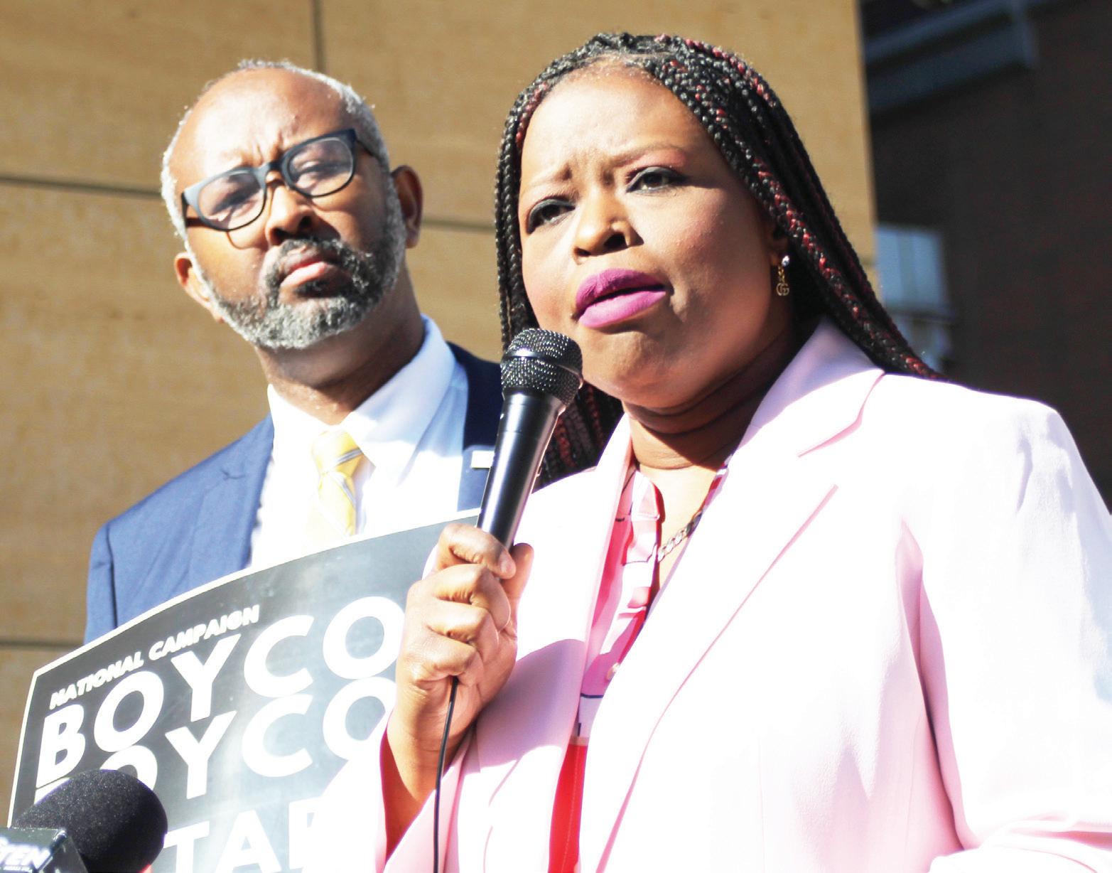 State activists, including Monique Cullars-Doty and Dr. Nekima Levy Armstrong, held a press conference outside Target headquarters Wednesday to clear up rumors about the boycott’s status.