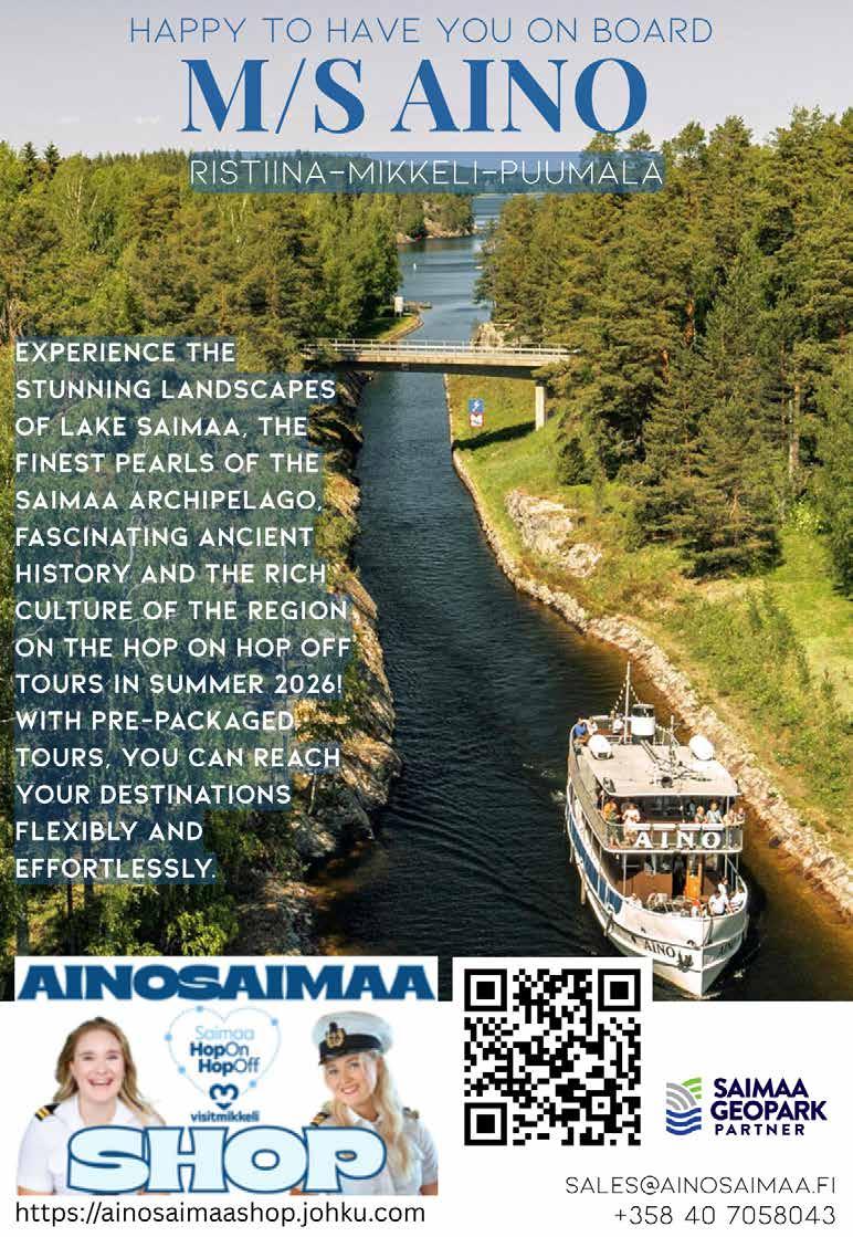 Cover photos Kayaking at sunset. Photo: Visit Saimaa View from Neitvuori Hill. Photo: Visit Saimaa Lakeside breakfast. Photo: Visit Saimaa Olavinlinna Castle in Savonlinna. Photo: Visit Saimaa Rosa Liksom. Photo: Pekka Mustonen