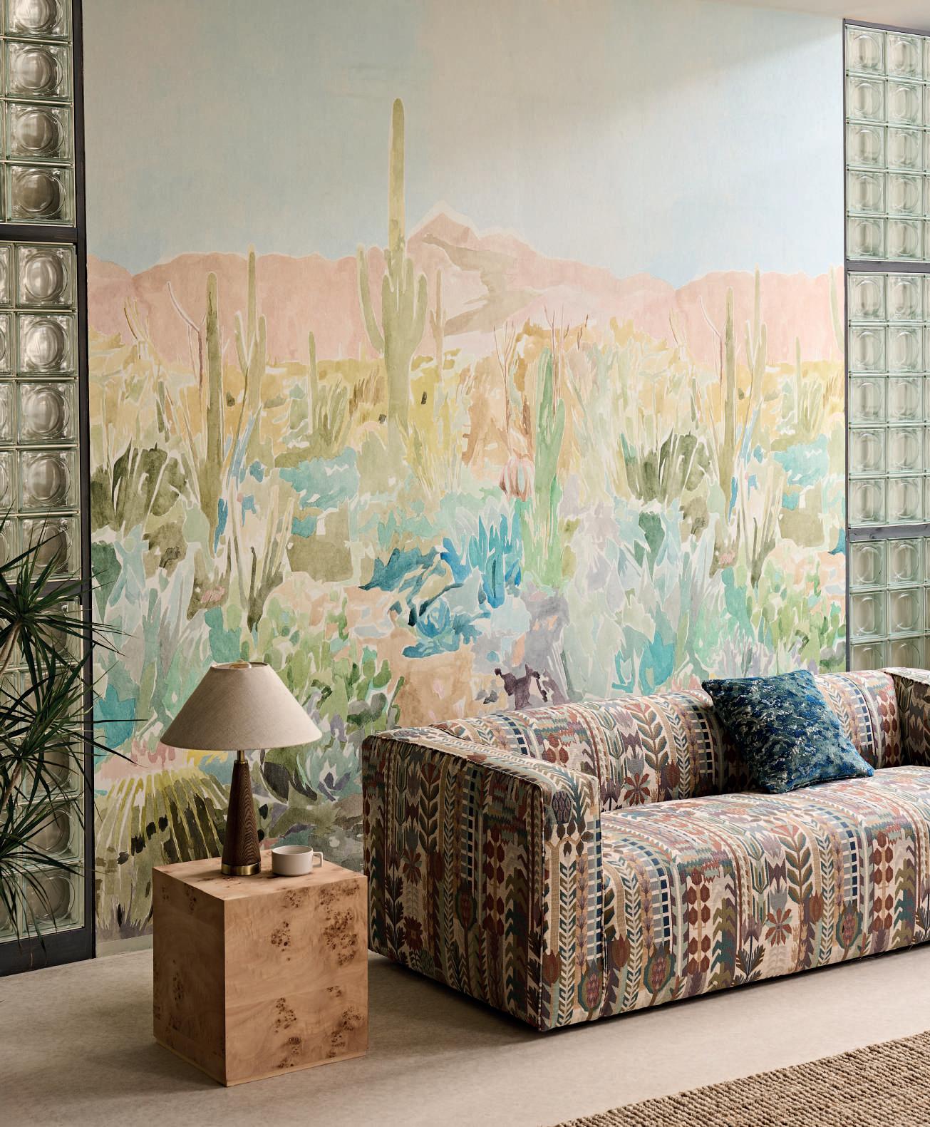 The Cabaret design is a celebration of contemporary geometric design. With a palette of shades ranging from deep pink to earthy orange and deep blue, this fabric brings a vibrant and welcoming personality to any space. Its composition, a refined blend of viscose, cotton, and polyester, provides a sumptuous feel reminiscent of classic velvets, but with the versatility of a high-quality flat fabric.