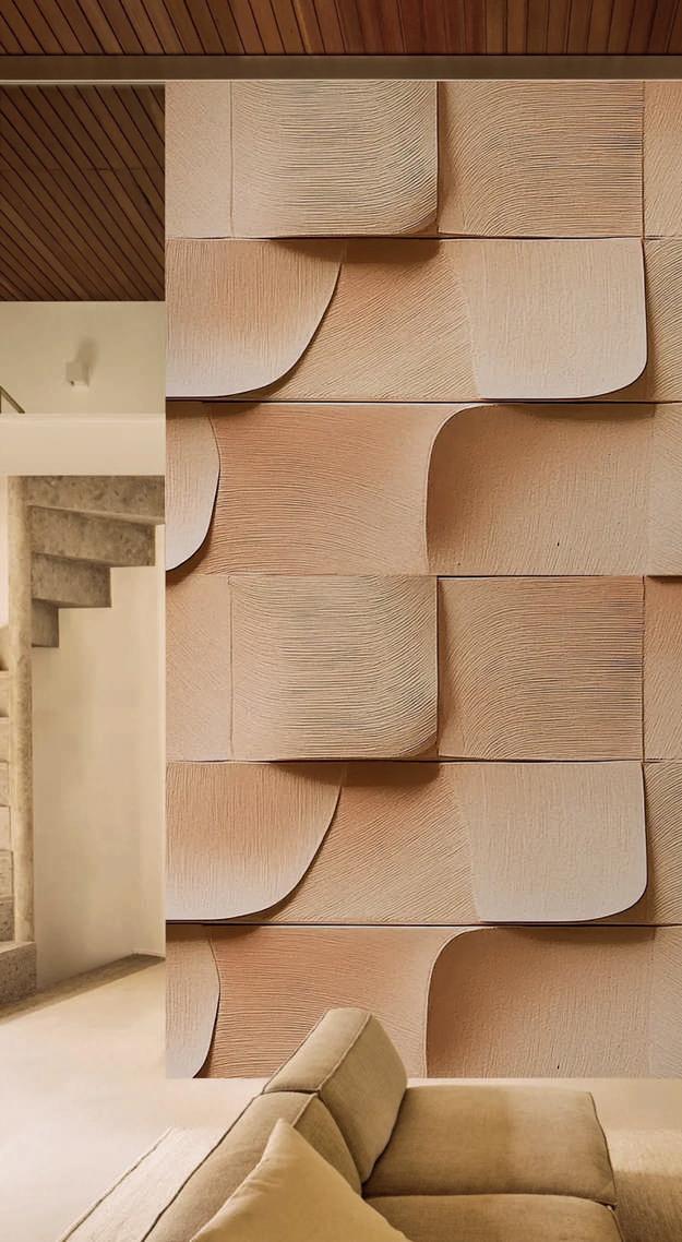 O padrão, formado por meias-luas espelhadas que se encadeiam como elos de uma corrente serena, cria um movimento ondulante e orgânico. É um tecido especial que transmite harmonia, continuidade e elegância, como se cada curva convidasse o olhar a seguir um percurso tranquilo e interminável.