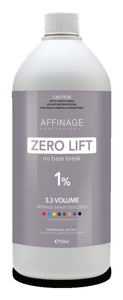 ZERO LIFT NO BASE BREAK GENTLE DEPOSIT IDEAL FOR TONING NEW AFFINAGE PROFESSIONAL 1% (3.3 VOLUME) DEVELOPER FIND OUT MORE 1800 804 757 WWW.AFFINAGE.COM.AU