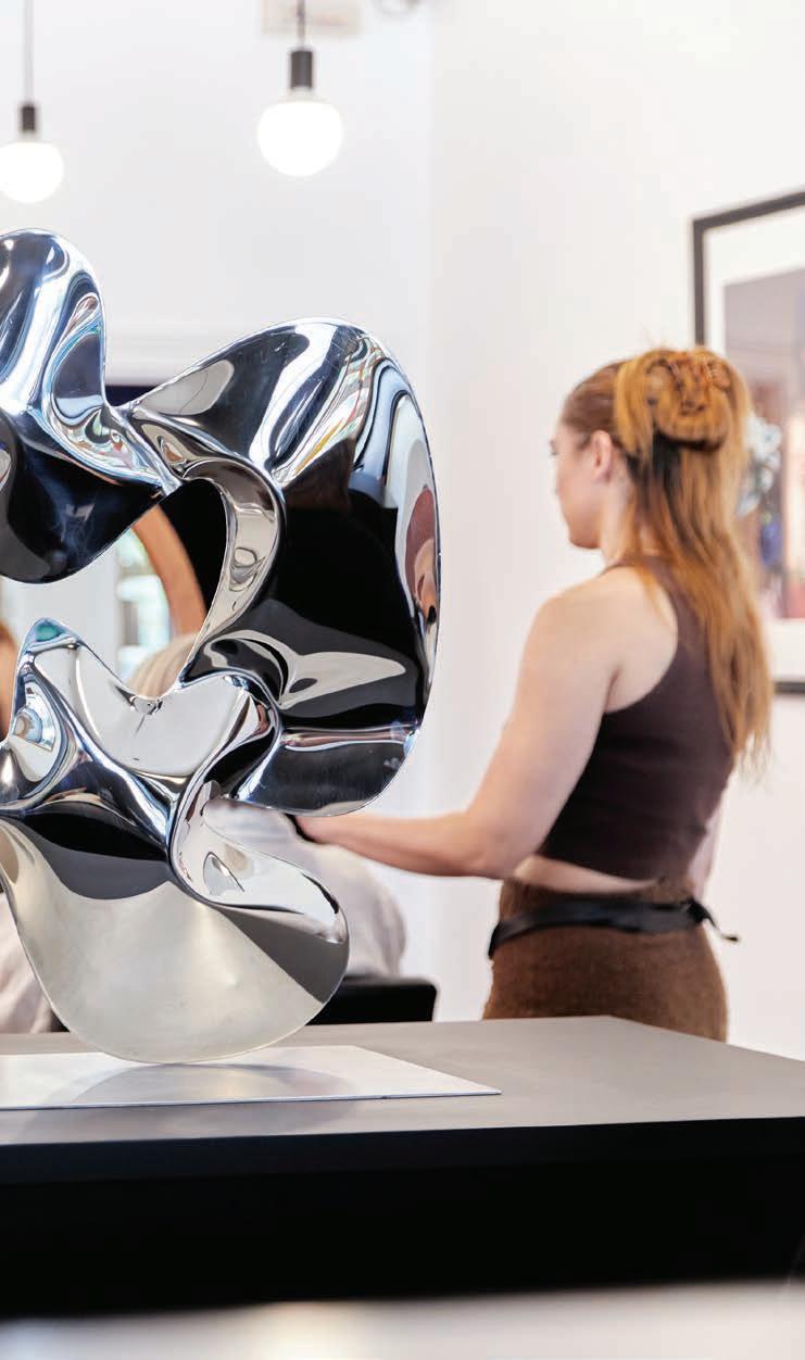 FUTURE 54 captures fleeting moments of pure joy and abandon. A second of exhilaration gone forever as the music shifts and changes. A timeless dancefloor where retro nostalgia and our futuristic world meet and merge. Disco was an escape from reality in the 70’s. From a world dealing with war, gay liberation and women’s rights. In FUTURE 54 there is a new escape. From a world where every movement is recorded and tracked, people no longer look eye to eye and reality and virtual is blurred. The disco styling is universally recognisable and could be back on the dancefloor at Studio 54, but it highlights the essence and influence of digital culture. It’s disco for a distant generation. There is a longing for the simplicity yet excess and abandon of the past. with an emphasis on juxtaposed metallics, sparkling textures, shimmering movement and sharp lines. This is a celebration - everyone is equal and free on the dancefloor.