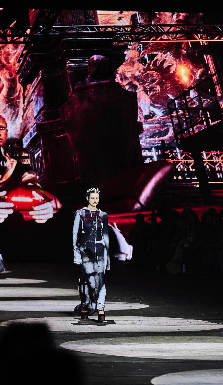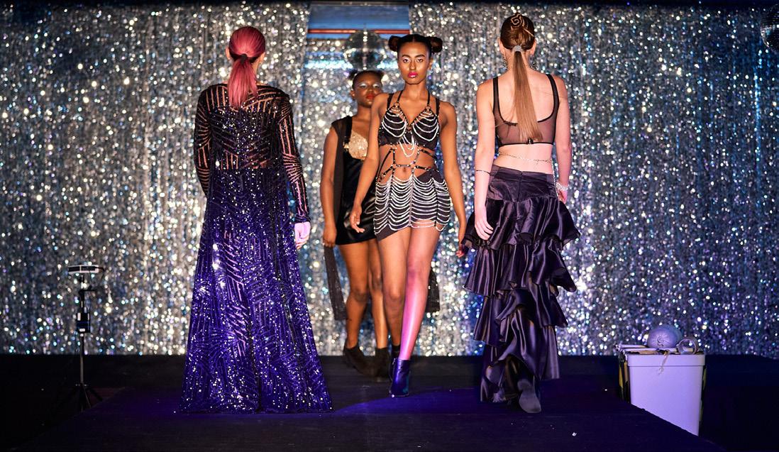 The word Cymatic references geometric lines, shapes and patterns juxtaposed with global finery, beauty and Queen references that mutates the head shape, proposing crown-like grandeur. Lighting-wise, broken mirror glass was used to create shapes and patterns with shadow to hint at a secondary figure as a silhouette, implying a queen’s subject. When it comes to styling, A respectful colour - black. Textural variety for robe intricacy was used including mesh, velvet, PVC, glow mesh and satin. Silhouette assortment included tapered tips, pointed lapels, shoulder pads, cut lengths, shapes and gloves. And makeupnot overpowering, forfeiting uniqueness and beauty, enhancing how exquisite and noble a queen is.
