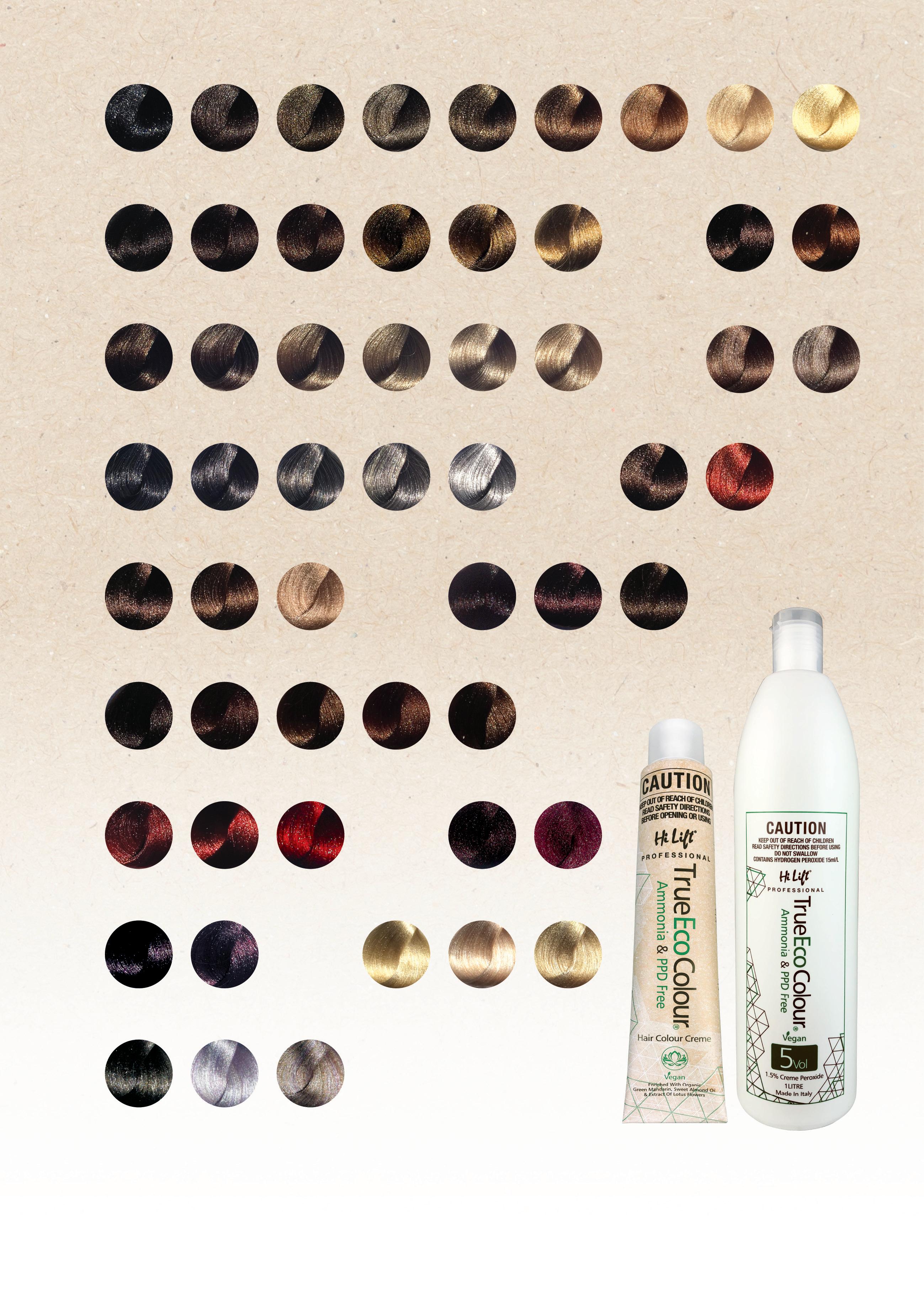Hi Lift TrueEcoColour is a high performance multi-functional hybrid ammonia and PPD free colouring crème. The unique vegan formulation of colouring agents and organic natural extracts produce exceptional performance, enabling long lasting results, superior grey coverage, brilliant shine and condition.