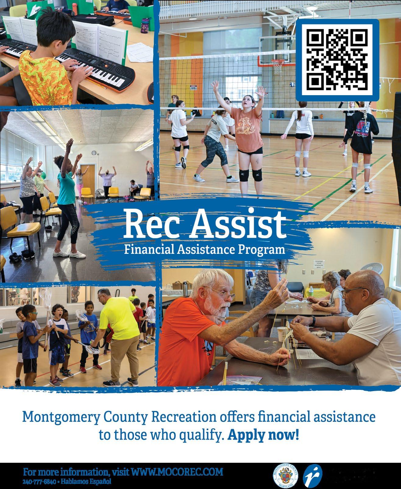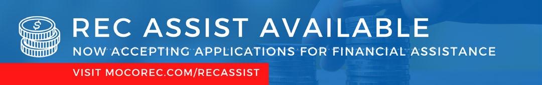 Rec Assist funds are available to County residents who are receiving assistance from other Montgomery County agencies. Visit our website at mocorec.com/RecAssist for more information.