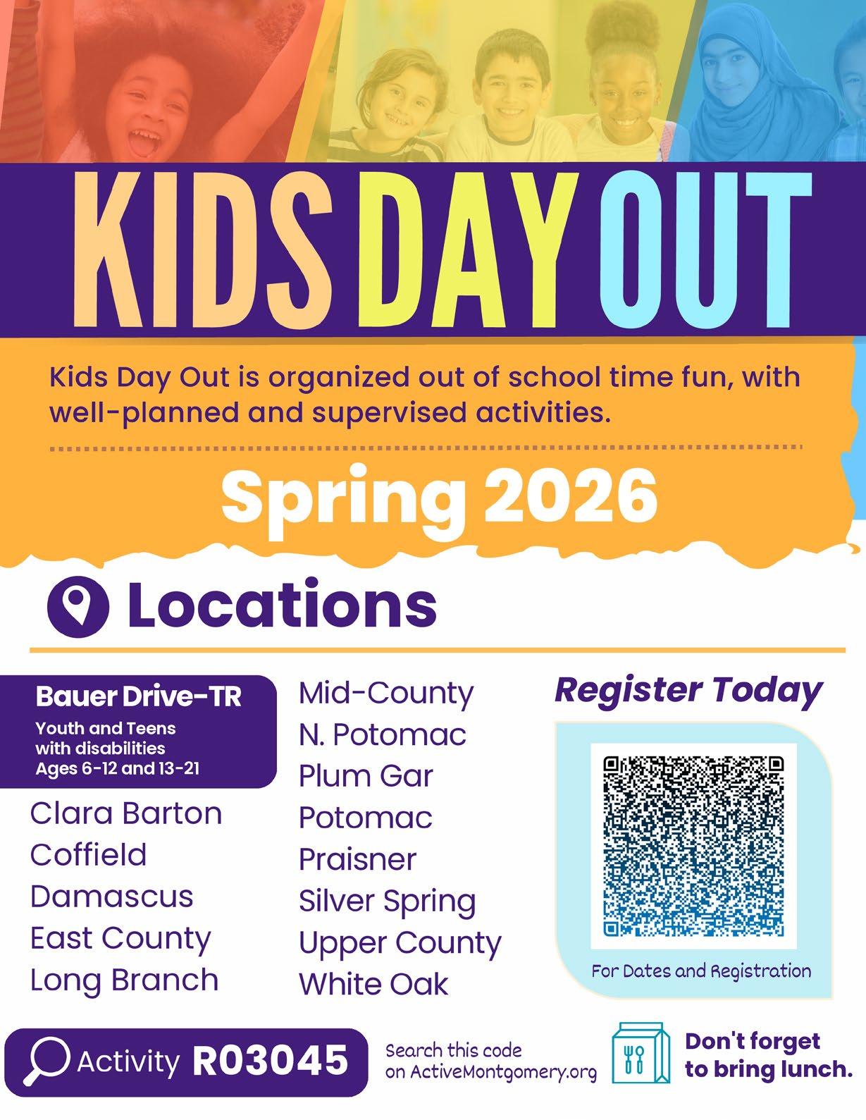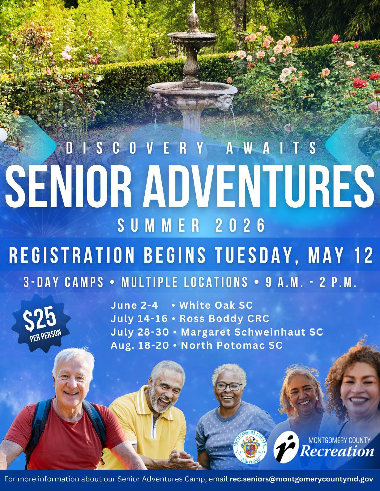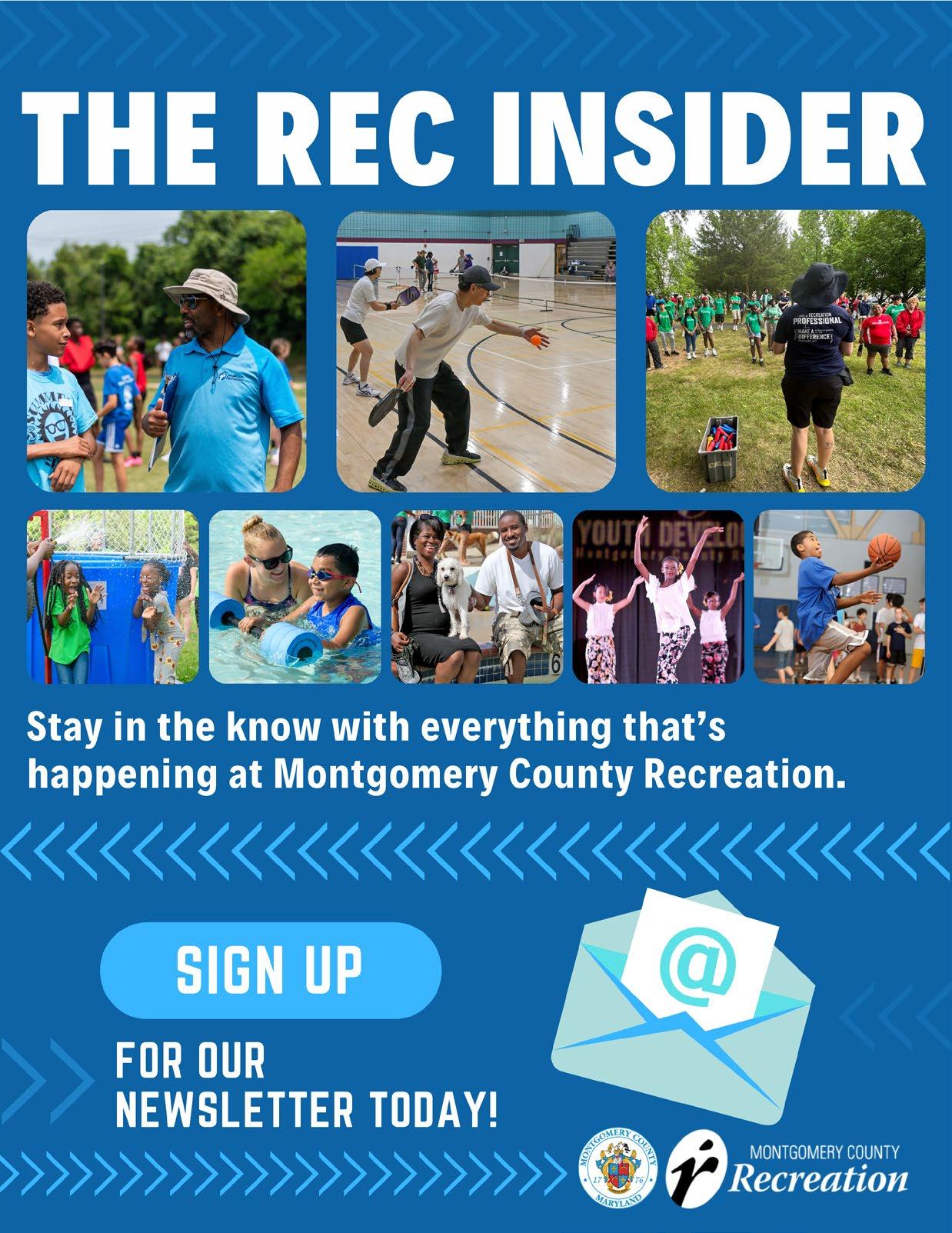 Individuals with disabilities are encouraged to register for programs offered by Montgomery County Recreation. To facilitate inclusion, you may request auxiliary aids or services. Interpreters, Braille or large print or other accommodations should be requested prior to the start of program.