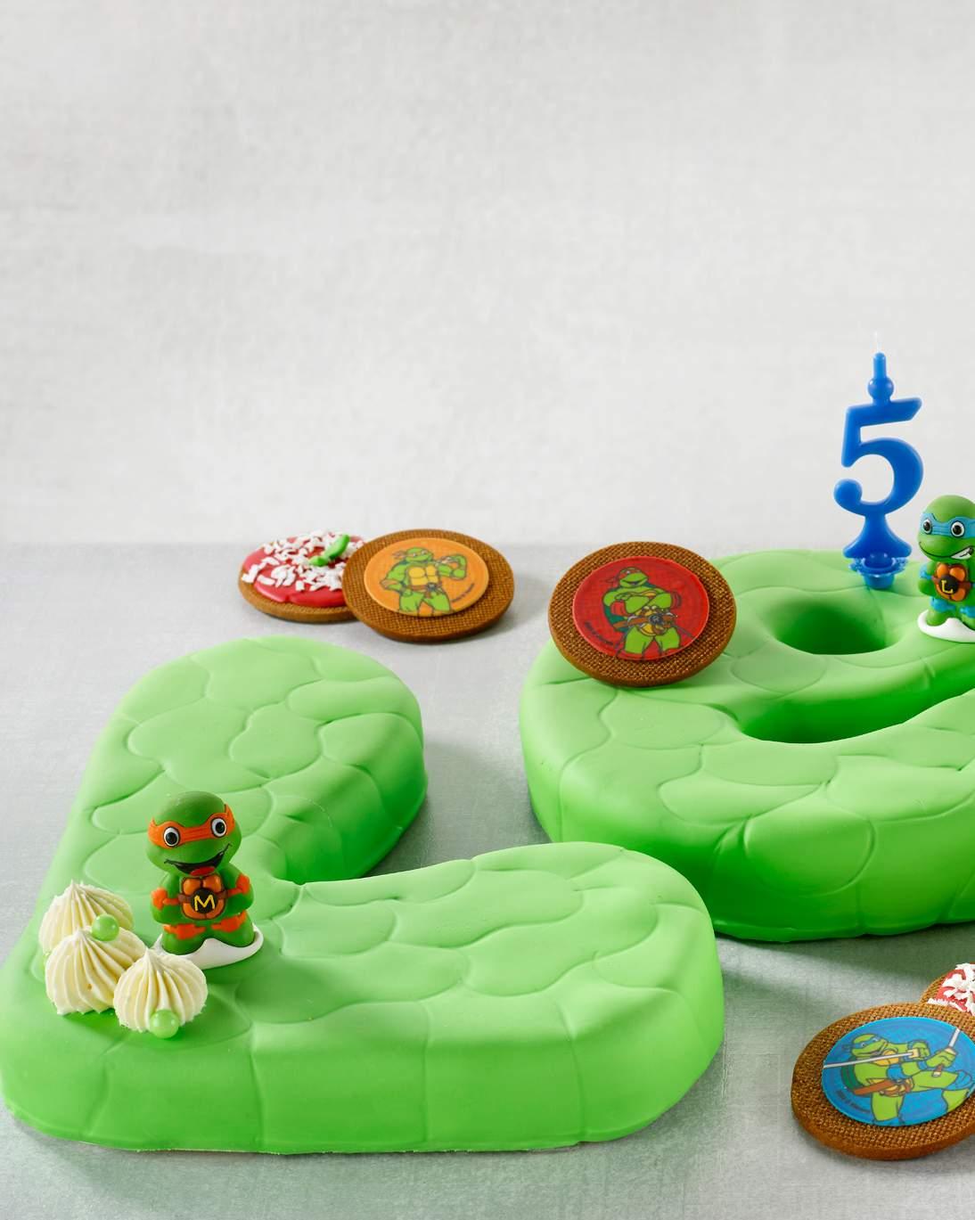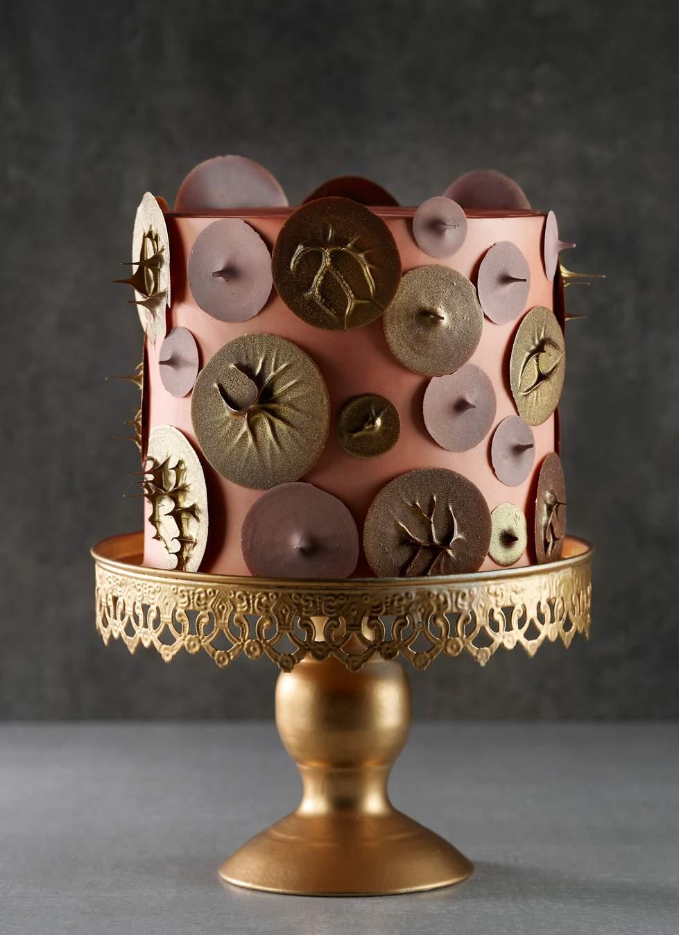 Isolar a base do modelo com película alimentar antes de o posicionar na superfície do bolo.