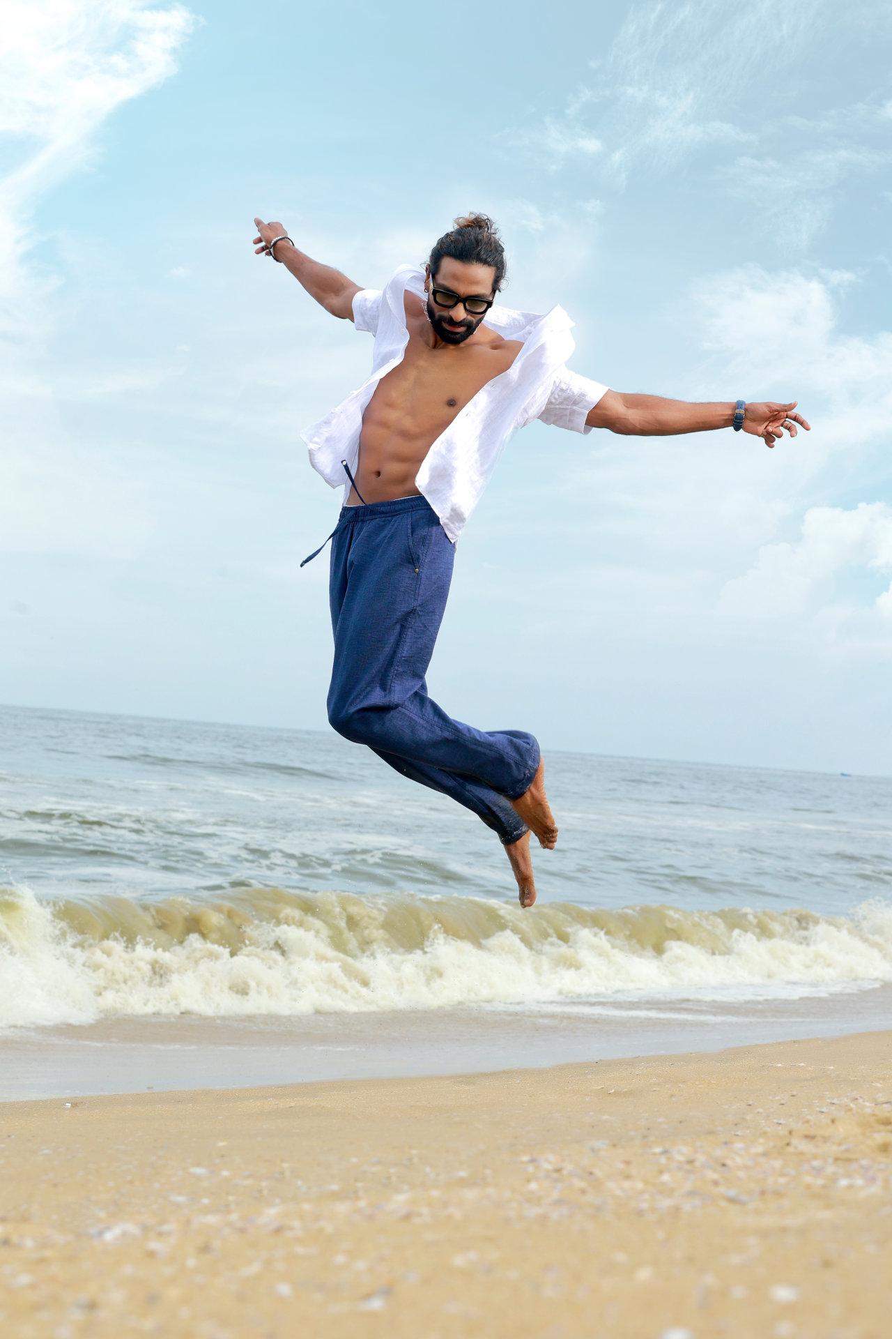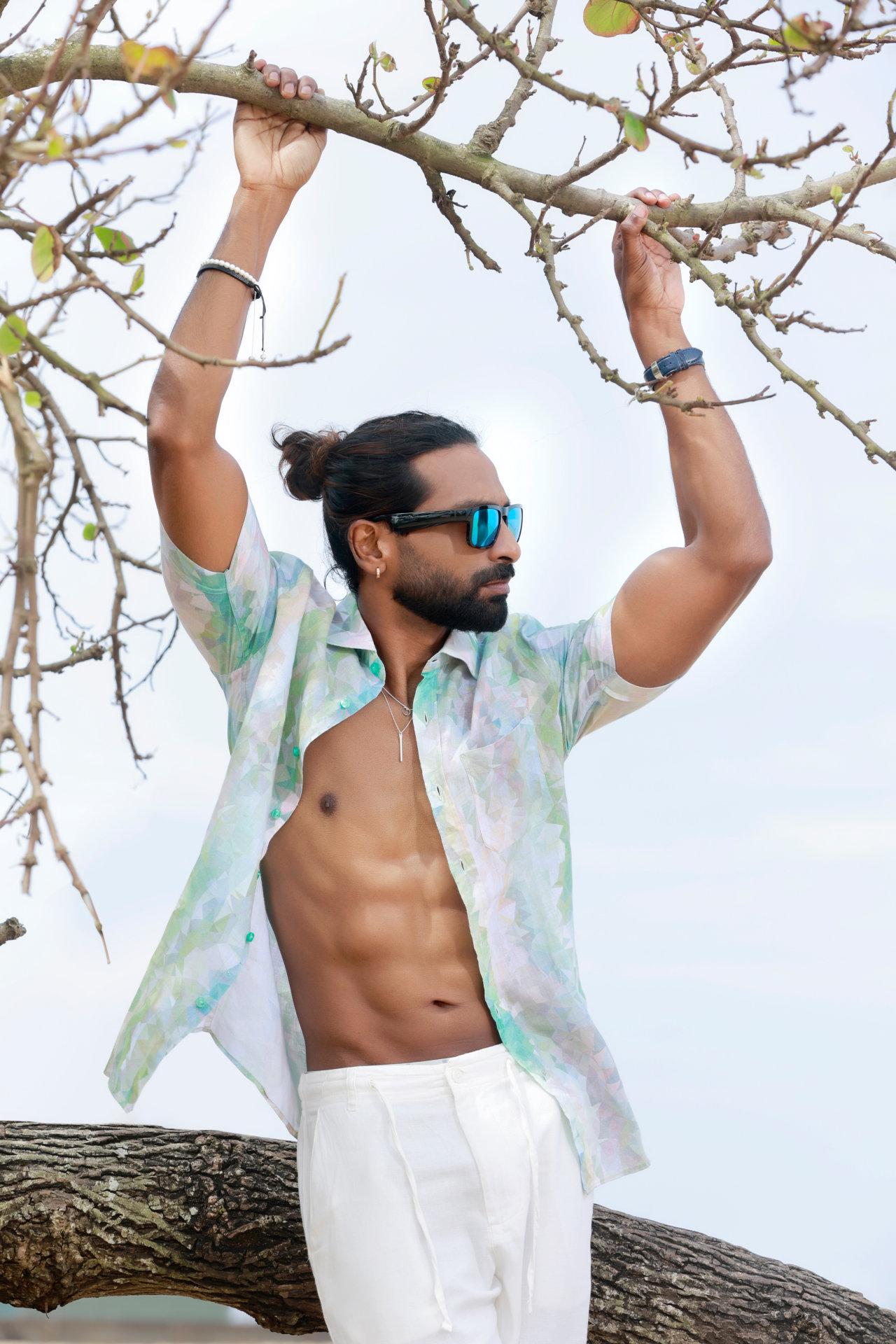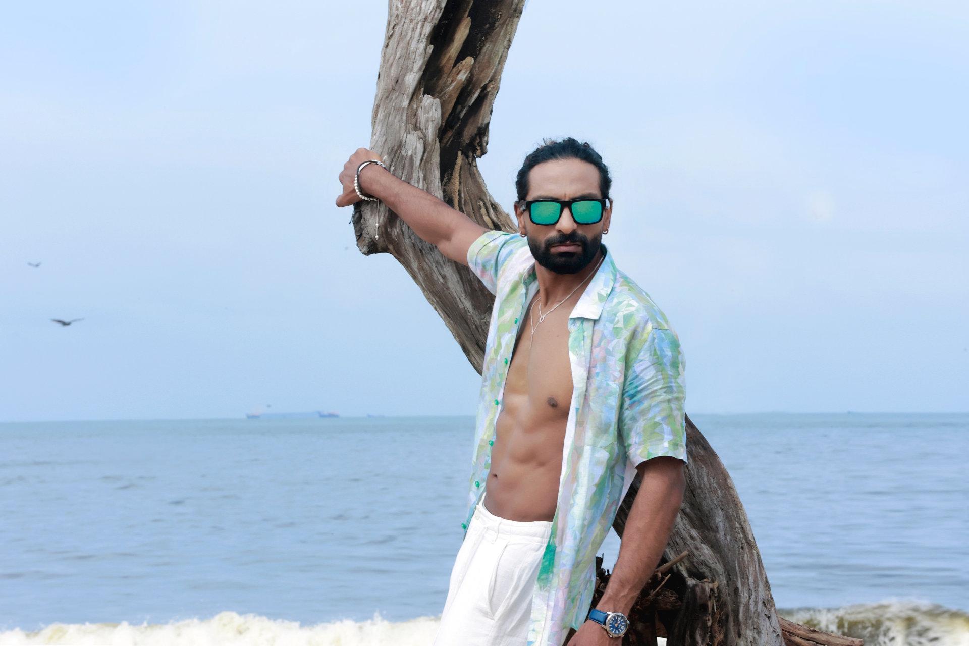 “Coastal Ease-Casual linen contours defined by ocean air and sun washed tones, balancing comfort with confident restraint, style that feels natural and relaxed by the shore.”