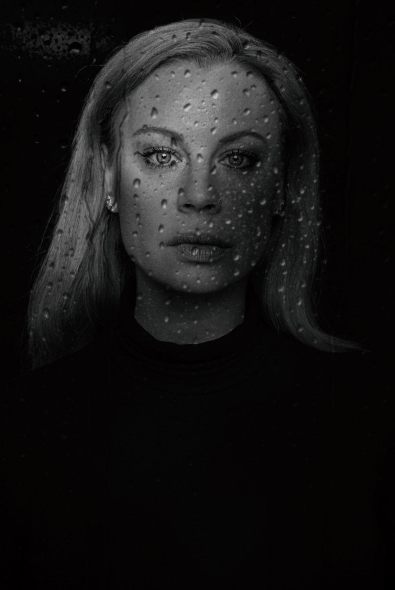The portrayed personalities appear in an unfamiliar, deeply profound setting—behind a glass wall covered in water droplets. What at first glance resembles tears symbolically represents courage, hope, and inner strength. It stands for the power to remain visible, open, and human despite challenges.