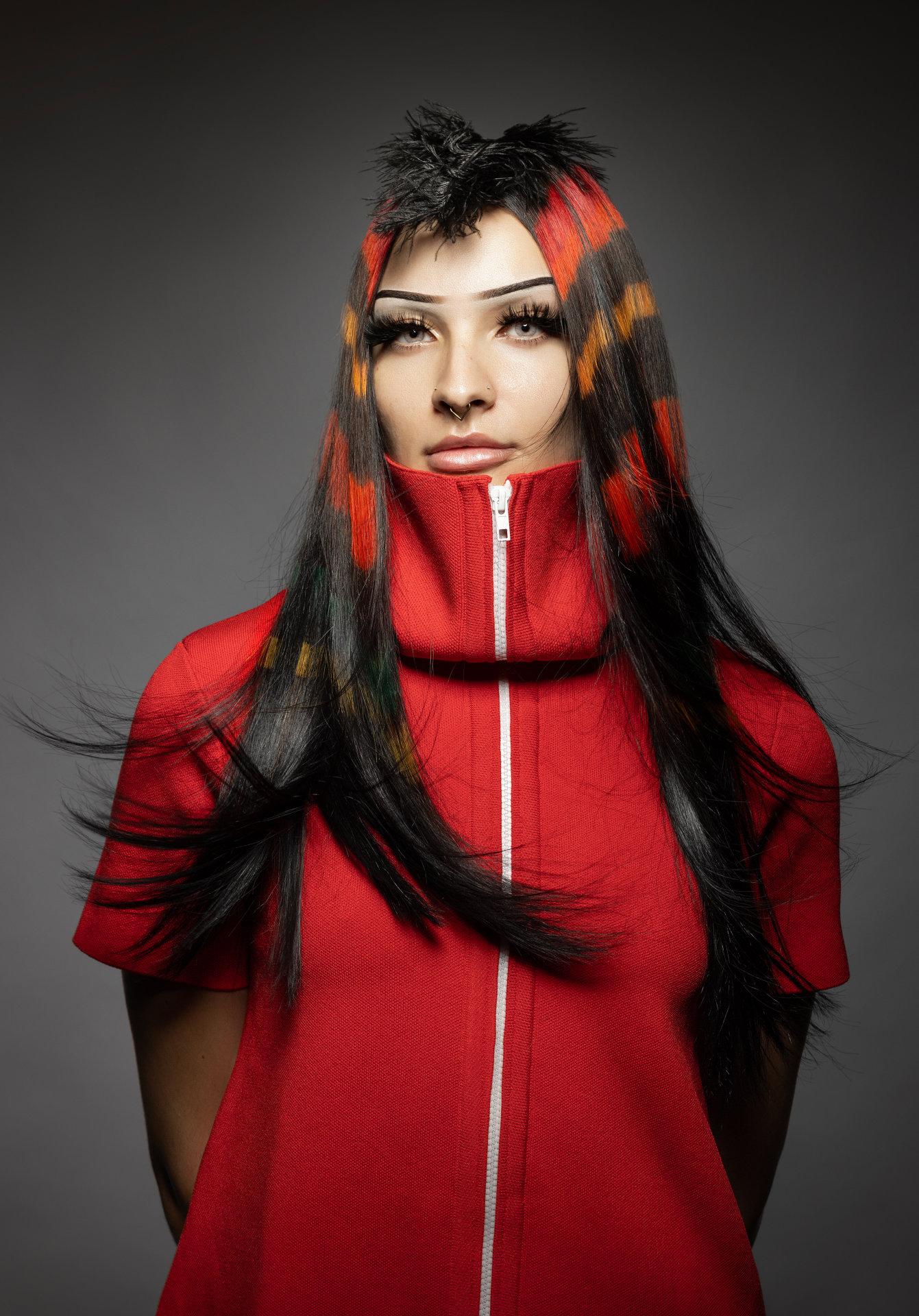 The Chromatic Threads collection, created by stylist Sonia Jiménez Cambronero, is a statement of intent that places hair in a new creative territory: the fusion of textile art, contemporary fashion, and chromatic architecture. In this work, hair is conceived as a living loom, where color interlaces to form a powerful, vibrant, and ever-moving graphic language.