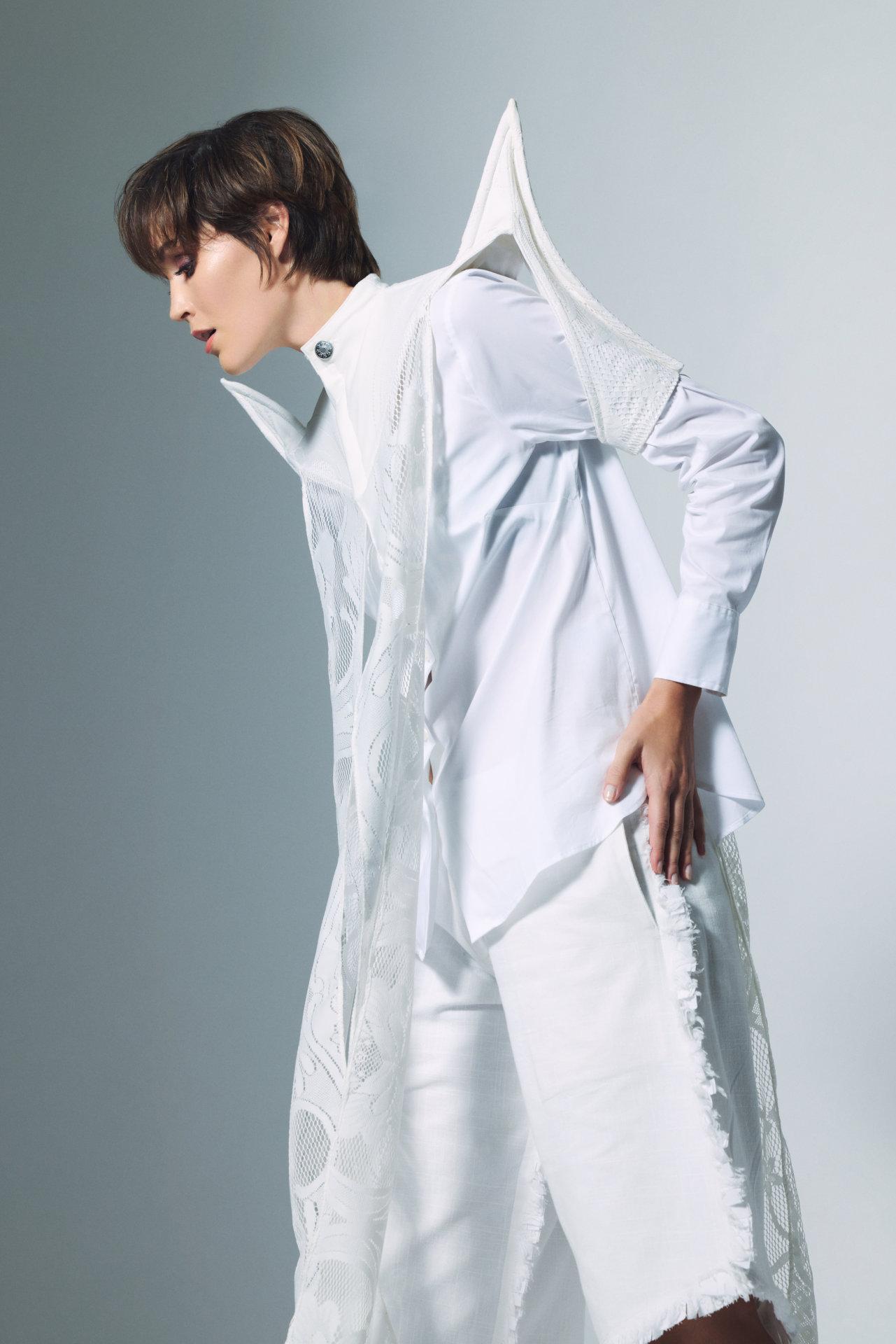 As for the styling, Ventoso chose a minimalist path. White was the predominant color in the clothing, precisely to highlight the models’ skin and hair The neutrality of the garments allows the hairstyles to become the true protagonists, while white conveys cleanliness, purity, and freshness—values the creator wanted to associate with this first foray into artificial intelligence.