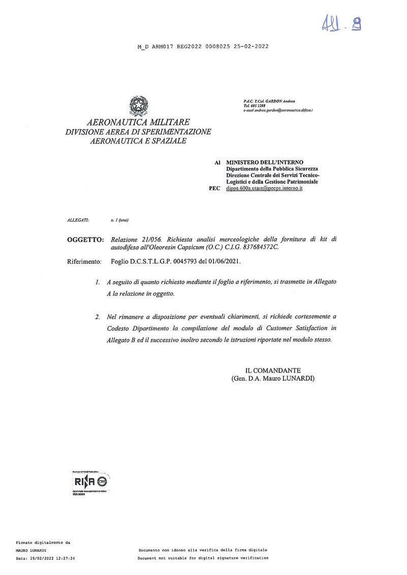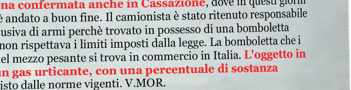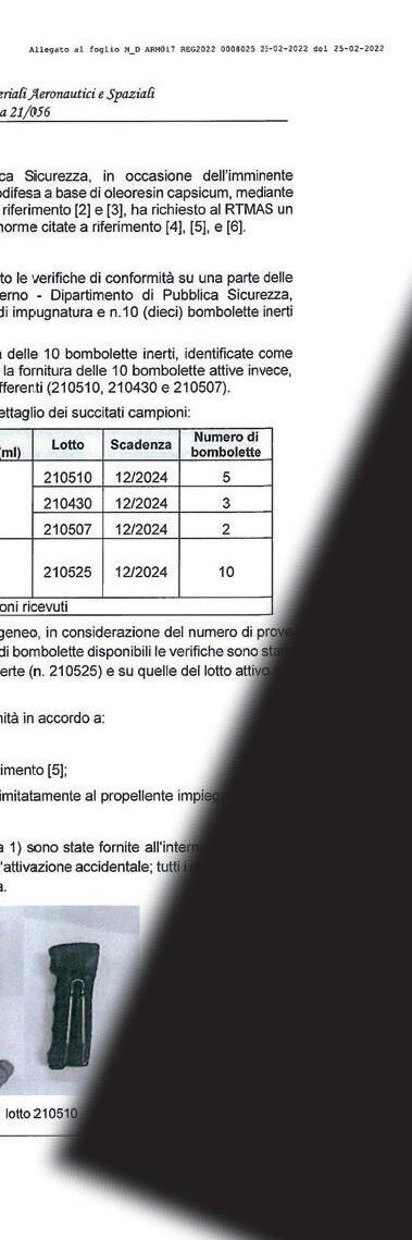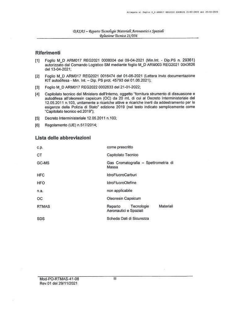 In data 22 luglio 2016,il“TACTIC580®”è statosottopostoallavalutazione delBanco Nazionale di Provaper le Armi da FuocoPor tatili eper le MunizioniCommerciali di Gardone Valtrompia (DECRETOLEGISLATIVO 29 settembre 2013, n. 121 Disposizioni integrativee correttivedel decretolegislativo 26 ottobre2010, n. 204, concernentel'attuazione della direttiva 2008/51/CE, che modifica la direttiva 91/477/CEErelativaalcontrollo dell'acquisizionee della detenzione di armi (13G00165) (GUSerie Generale n.247 del 21-10-2013), che con risposta Prot. n° 195-2016/Bal -AG/vp, dopo avereeffettuato unaserie di provetecniche di tipopratico basate sullaletteratura tecnica in materia (studi svolti negliStatiUniti d'America da JeffreyM. Widderin collaborazione conlaNIJ (National Institute Justice), non lo ha classificato arma, cer tificando chesoloselo strumentovenisse utilizzato in modoimproprio (picchiandoa tuttaforza sullatesta di unapersona)potrebbecausare dannifisicialle persone, così come qualunquealtro strumento di uso comune,nonchè pugni, calci etestate, biro, forbici, etc.