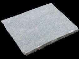Lys 40 x 60 cm T = 30-60 mm. Langkanter saget, kortkanter grovhugget. Kan monteres med små fuger langs langkant. Motstandsdyktig mot syrer og salt.