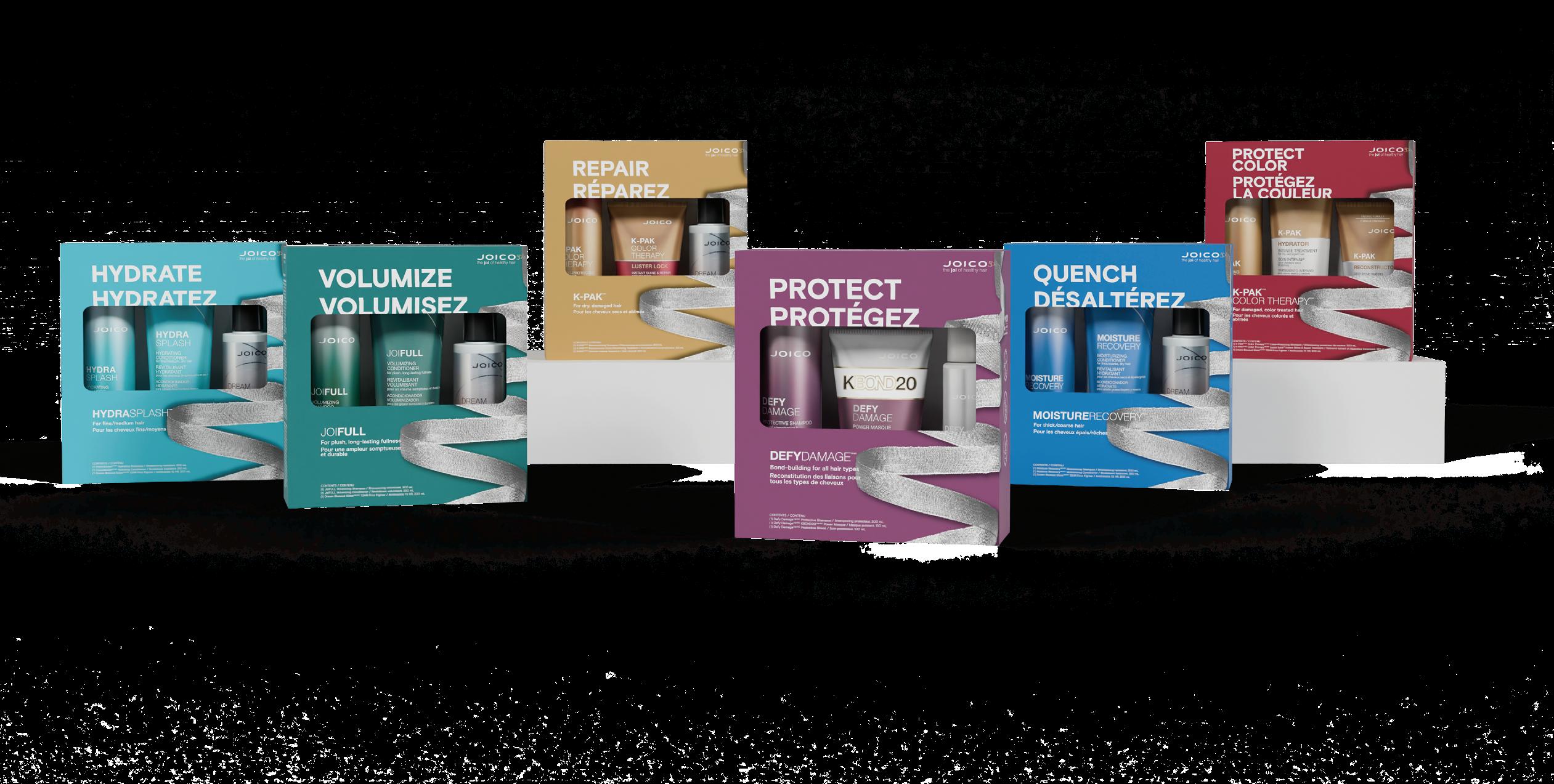 HOLIDAY CURATED ESSENTIALS These carefully selected kits offer the best haircare to your salon guests. Each trio offers hydration, repair and easy at-home styling.