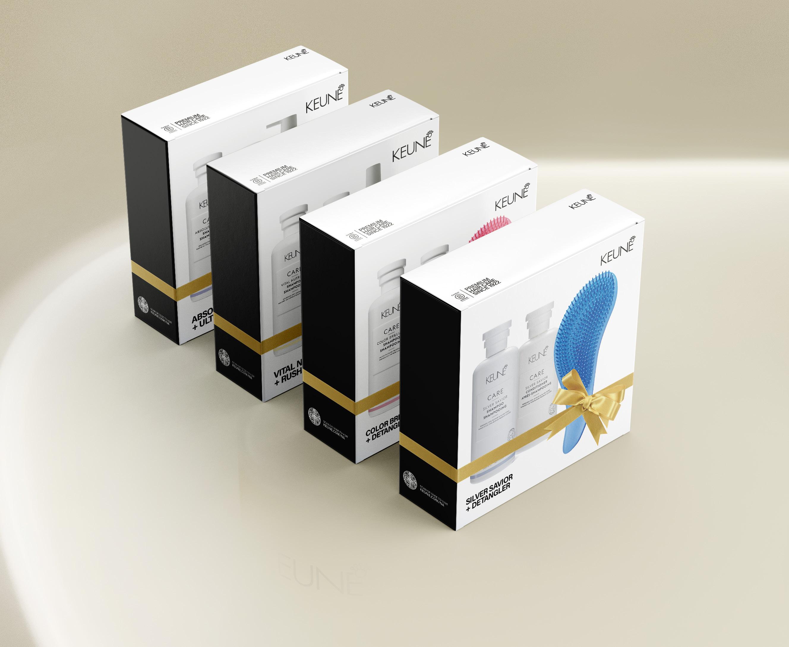 CARE HOLIDAY BOX SET 3PK Purchase a Care Shampoo and Conditioner and receive a Keune Detangler, Ultimate Blowout, or Rush Hour FREE , conveniently packaged in a holiday gift box.