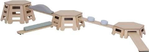 The Hilltops Nordic Set features three playful hill-like platforms of varying heights, designed to inspire active movement and engage children in jumping activities