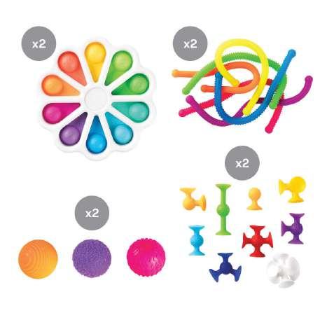 A practical kit of fidget tools including flick sticks, bubble pops, puzzles and stretch strings, designed to support focus, self-regulation and calm. These hand-held aids provide tactile input and help children channel energy to improve concentration.