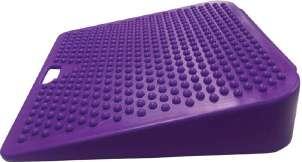 This seat wedge in purple is an inflatable shaped cushion to sit on, or it can also be used upright in any chair as a back support or on the floor.