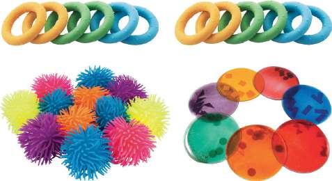 A versatile set of six soft rubber rings designed to inspire creativity and physical activity. illustrated accessories not included.
