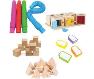 An engaging kit with sound prisms, pop tubes, sound boxes, sensory cubes and rainbow recorders to stimulate auditory exploration. These resources build listening skills, sound recognition and auditory memory while encouraging playful interaction. MTASSKIT7 Kit