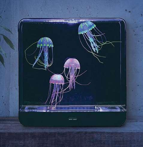 Captivating and mesmerizing jelly fish tank featuring jelly fish swimming with uncanny lifelike motion. Creates a calm and soothing atmosphere anywhere.
