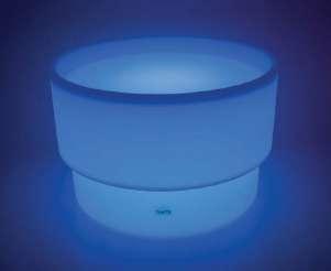 This colour changing furniture comes with a remote control, through which you can set up to 6 different colours. They are calming to look at and the colours fade evenly along the whole shape.