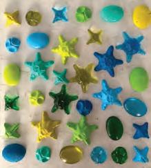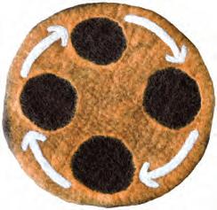 Stitched bean bag style, multi-coloured vinyl design. Size: 6 cm (Dia.).