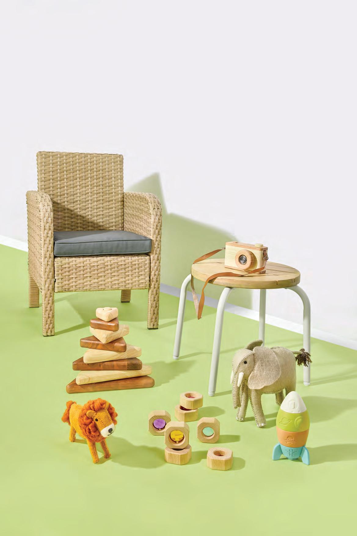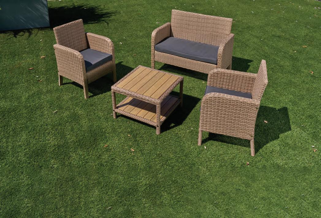 The Harmony Education Outdoor Wicker Lounge Set includes a sofa, 2 armchairs, and a coffee table. Made with a metal frame and naturalcoloured plastic wicker, the sofa and chairs feature charcoal grey seat cushions for added comfort. Durable and weather-resistant, it’s ideal for early learning outdoor spaces.